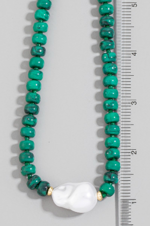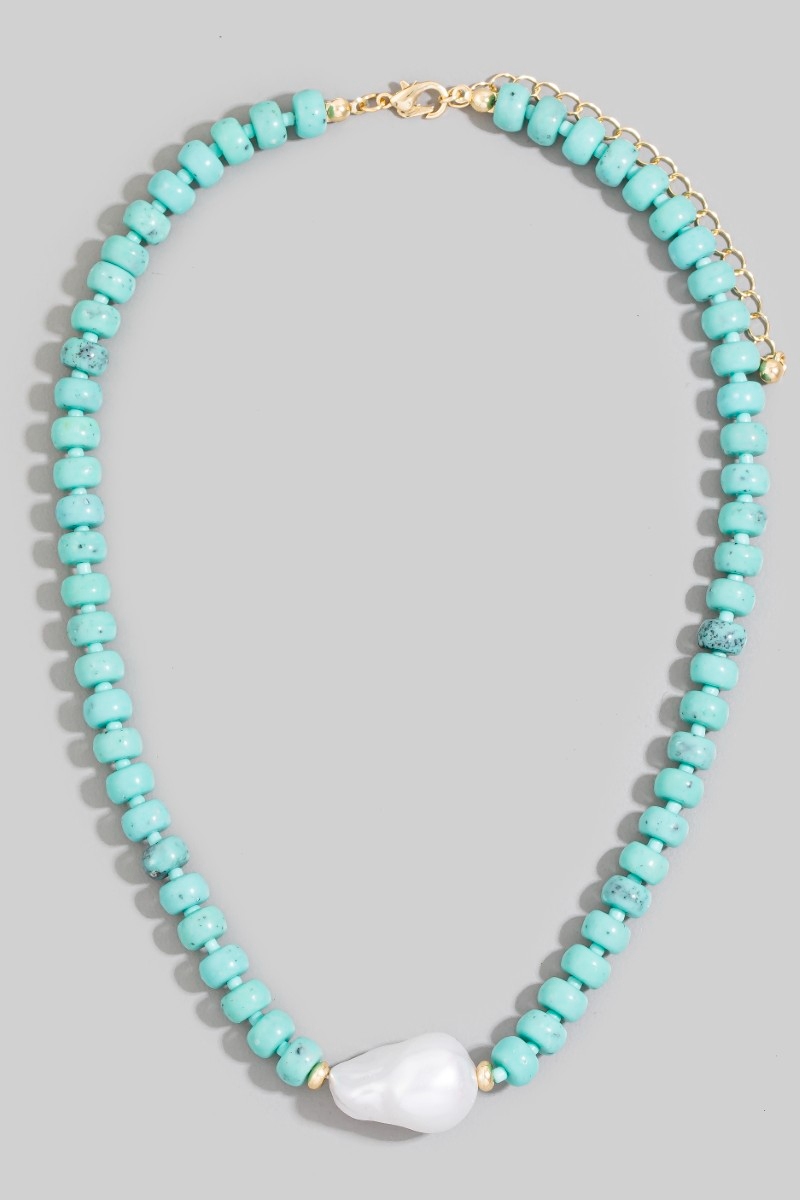 - This necklace adds a modern turquoise rondelle & baroque pearl beaded style. Elevate your ensemble with this chic, timeless necklace.