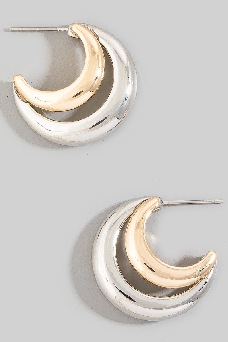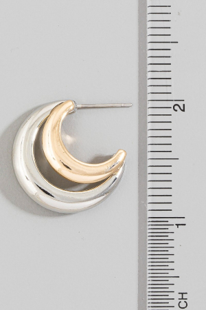 • This pair of hoop earrings introduces a unique two tone crescent style. Explore a refined sense of style with this pair of hoop earrings, seamlessly elevating the chic factor of your look.