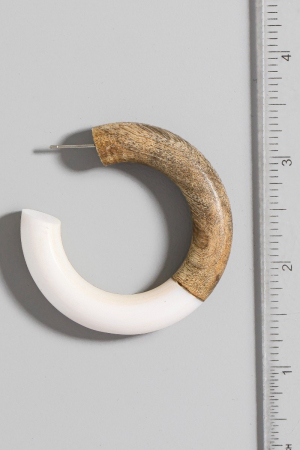 • This pair of hoop earrings displays a fashionable two tone wooden c style. Immerse yourself in fashion finesse with this statement pair of hoop earrings.