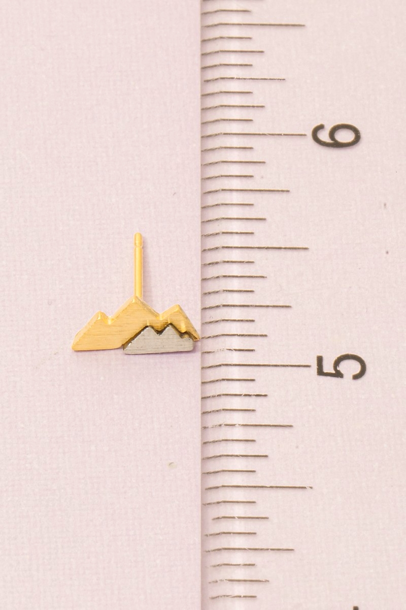 - This trending pair of earrings showcases a unique two toned mountain stud earrings style. Celebrate the art of accessorizing with this piece that effortlessly encapsulates modern trends.