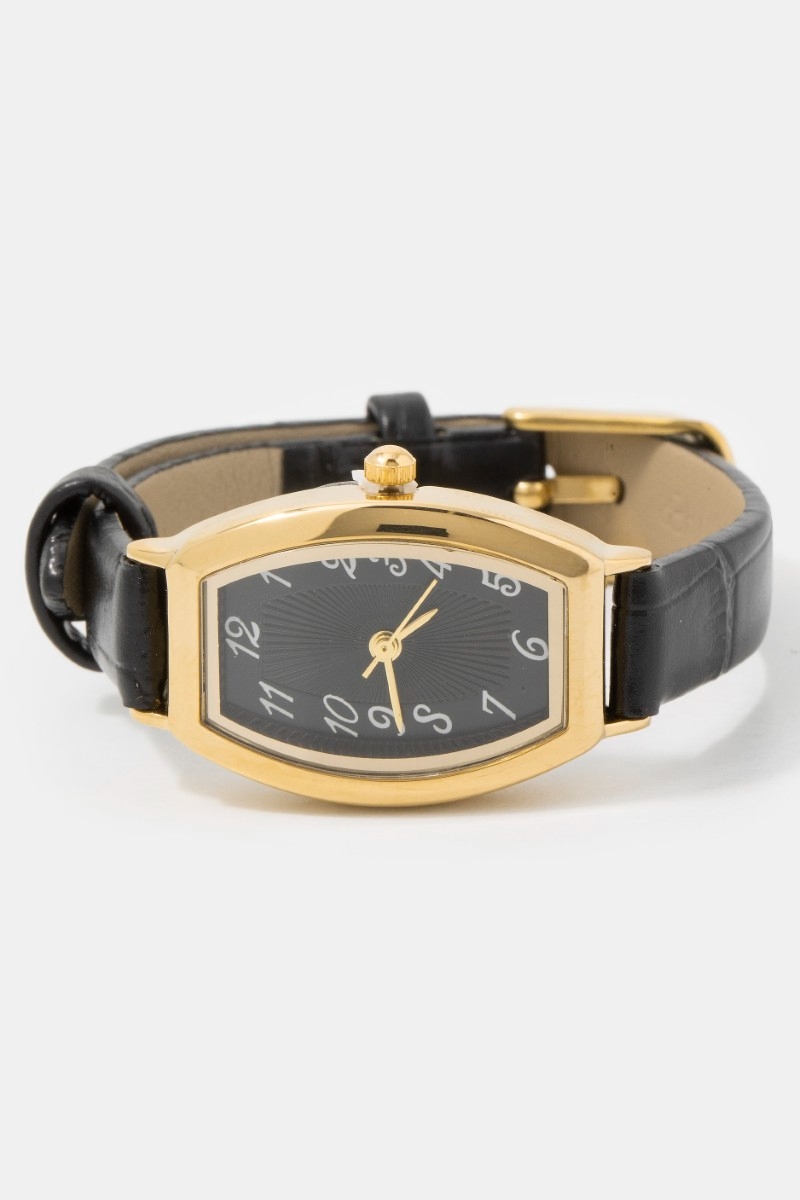 - This accessory showcases a timeless thin leather strap vintage style watch style. Discover the perfect balance of subtlety and flair as this accessory effortlessly completes your look.