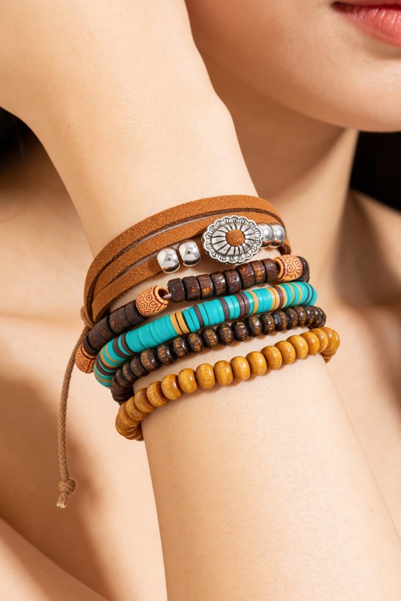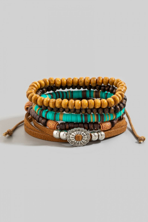 • This bracelet showcases a timeless western assorted wooden beads set style. Witness the perfect fusion of style and functionality as this bracelet effortlessly complements your lifestyle.