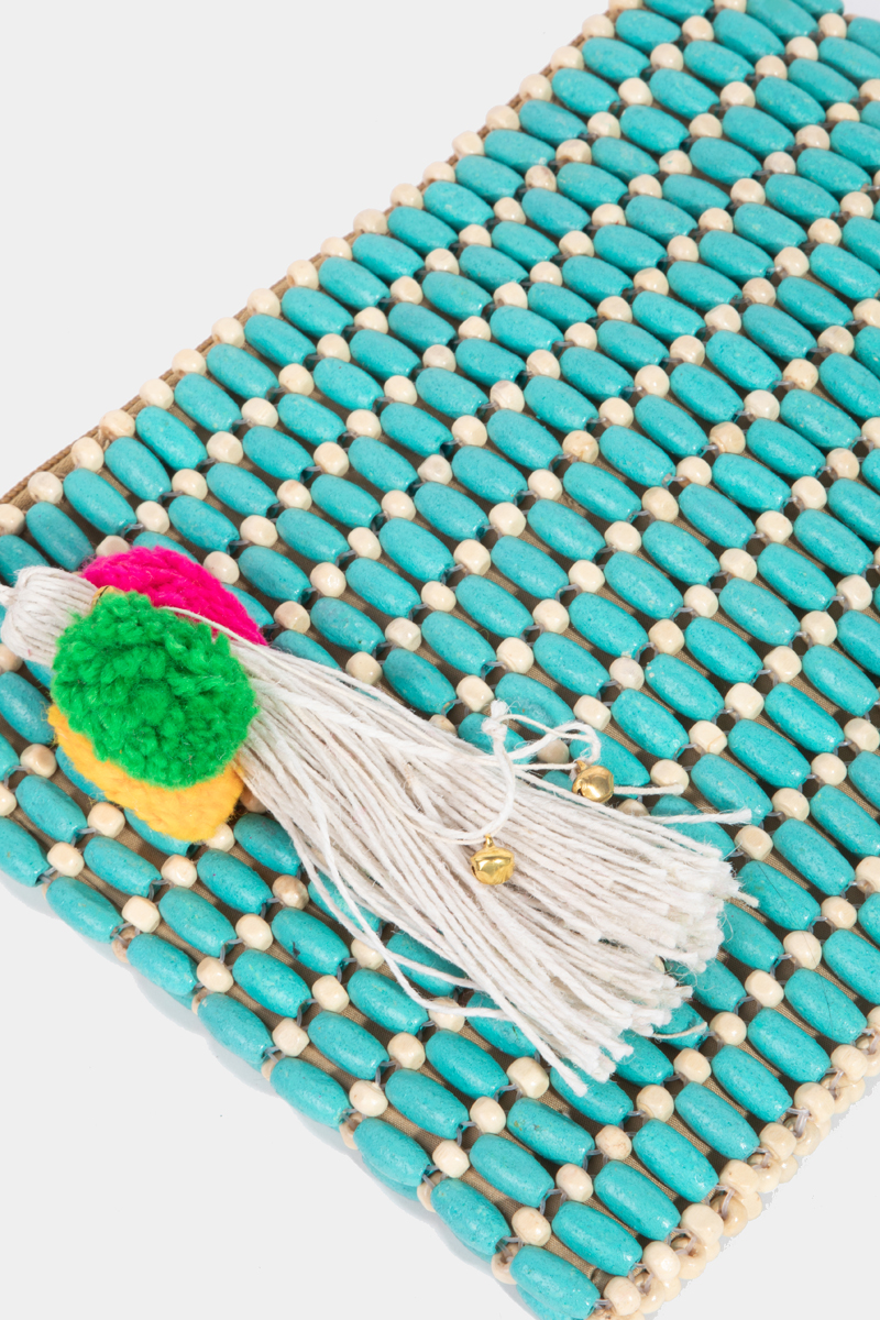 - This bag displays a fashionable wooden beaded rectangle style. Witness the perfect fusion of style and functionality as this bag effortlessly complements your lifestyle.
