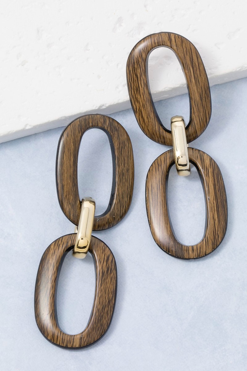 - This pair of dangle earrings features a fashionable wooden ovals style. Redefine your look effortlessly with this standout, on-trend piece.