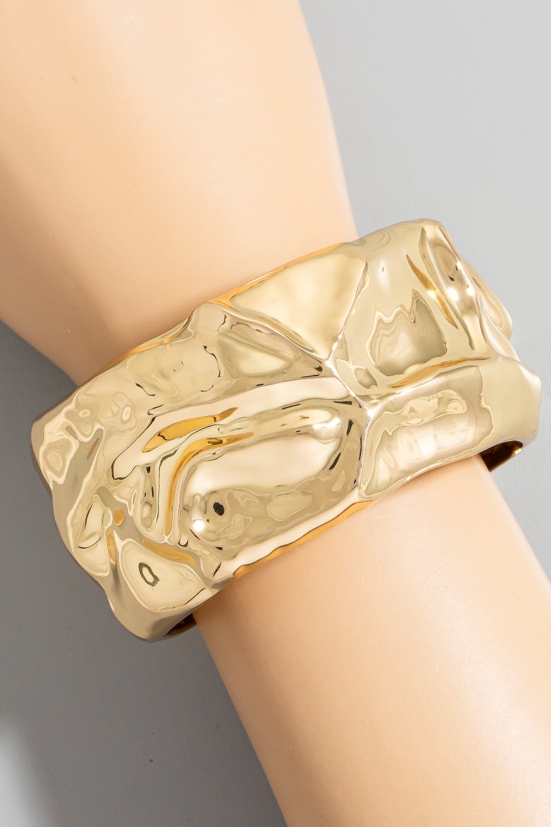 - This bangle bracelet brings a stunning crumple texture wide hinge style. Unveil a new dimension of sophistication as this bangle bracelet effortlessly enhances the elegance of your ensemble.