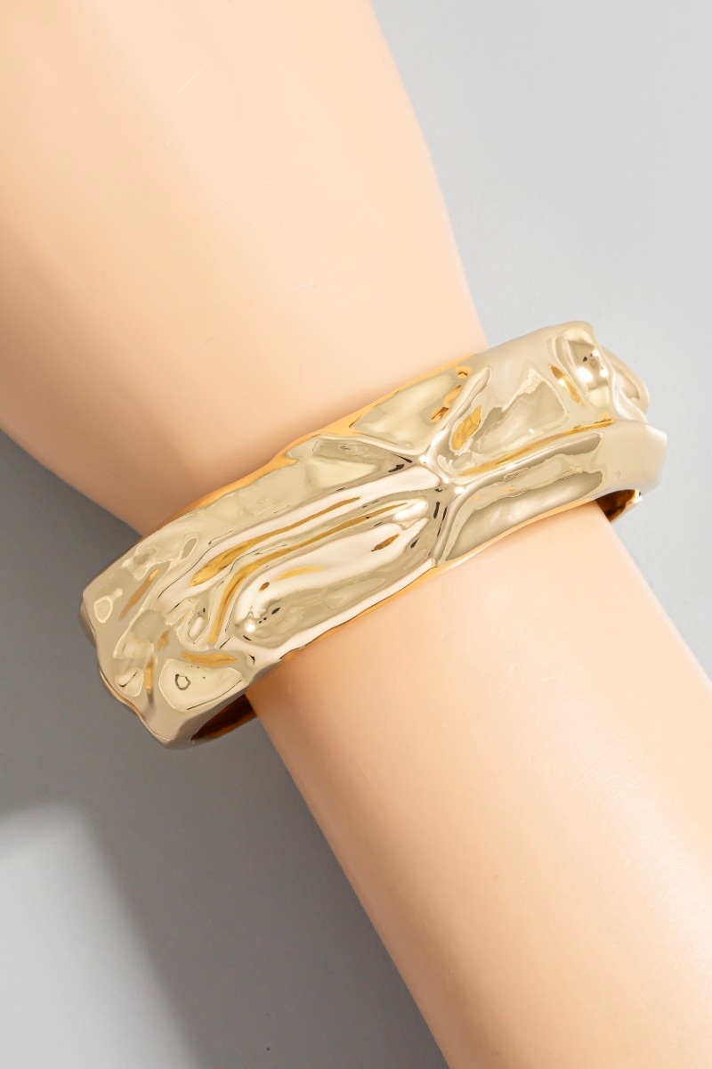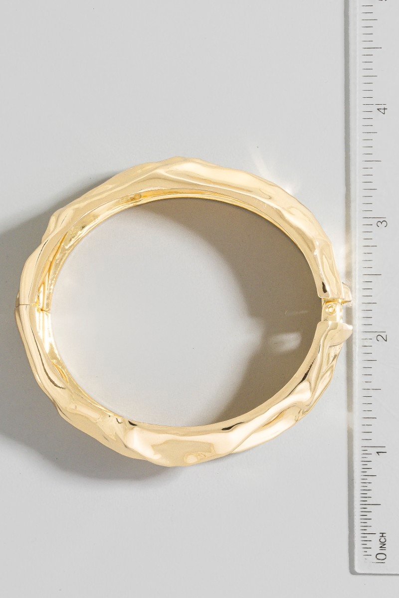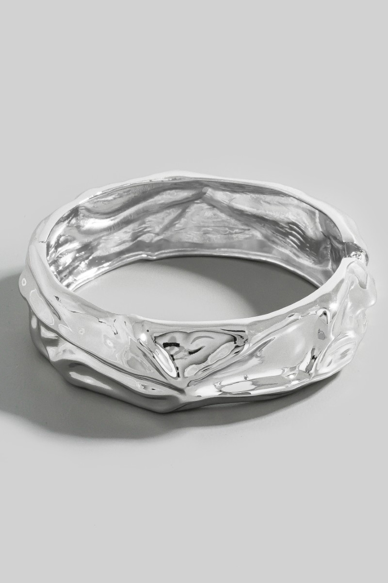 • This bangle bracelet showcases a timeless crumple texture hinge style. Savor the allure of detailed craftsmanship in this exquisite bangle bracelet.