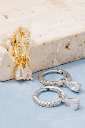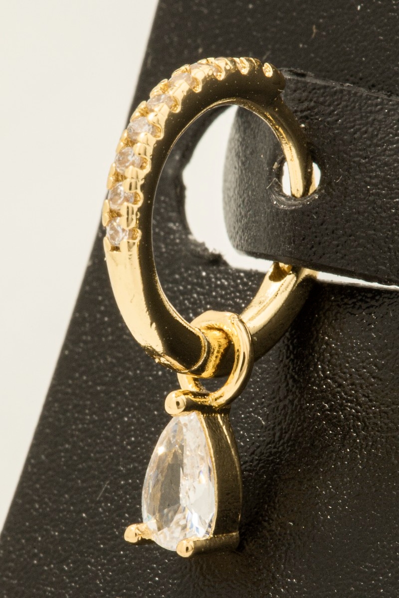 • this pair of columbus jewelry hoop earrings displays a vibrant gold dipped pave and tear gem style. Celebrate the art of accessorizing with this piece that effortlessly encapsulates modern trends.