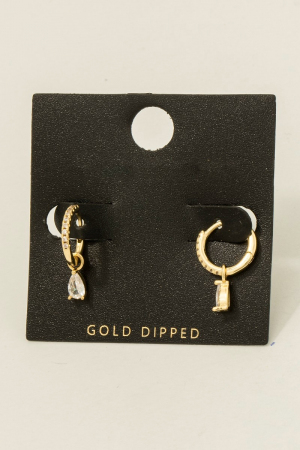 Gold Dipped Double Cz Dangle Earrings