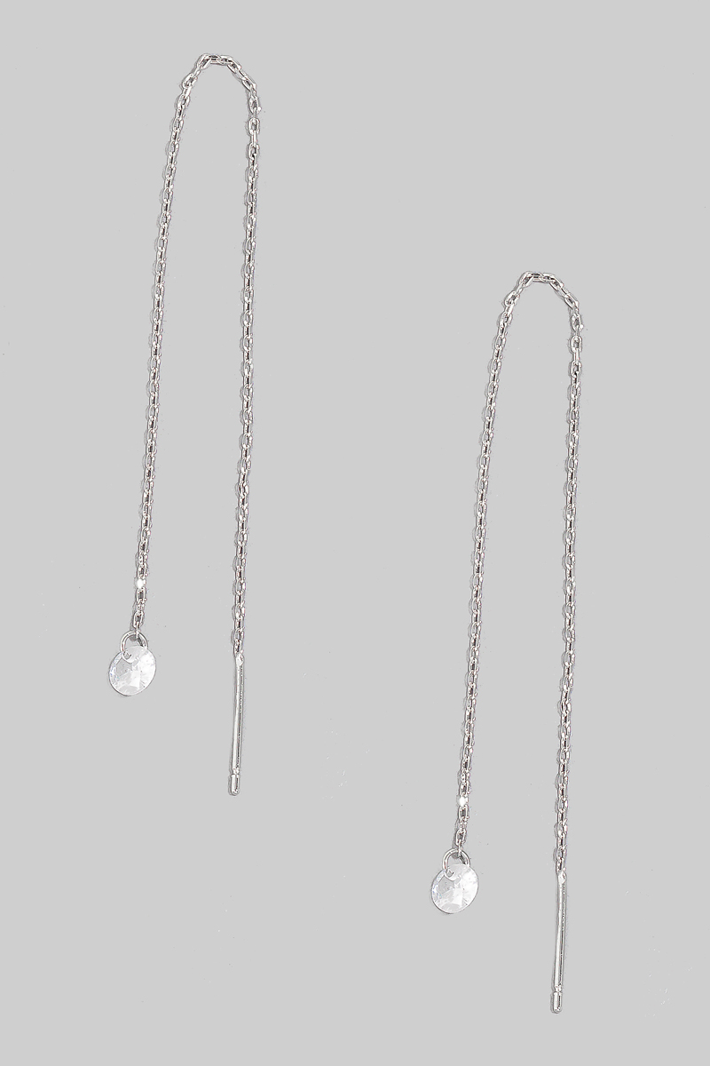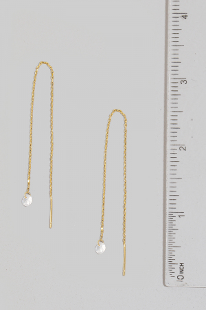 • This pair of earrings displays a fashionable rhinestone gem threader chain style. Revel in the intricate design that effortlessly distinguishes this pair of earrings, making it a statement piece.