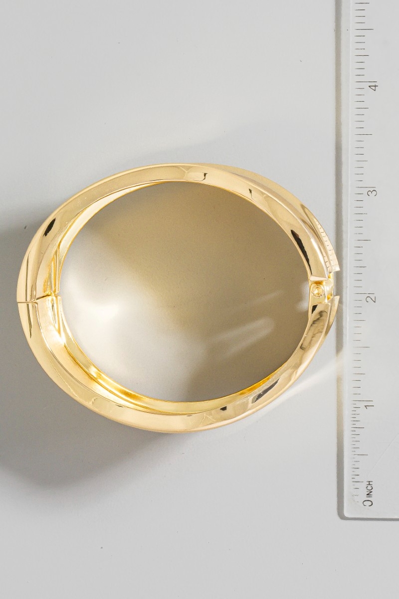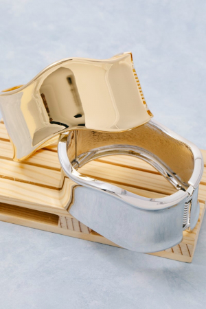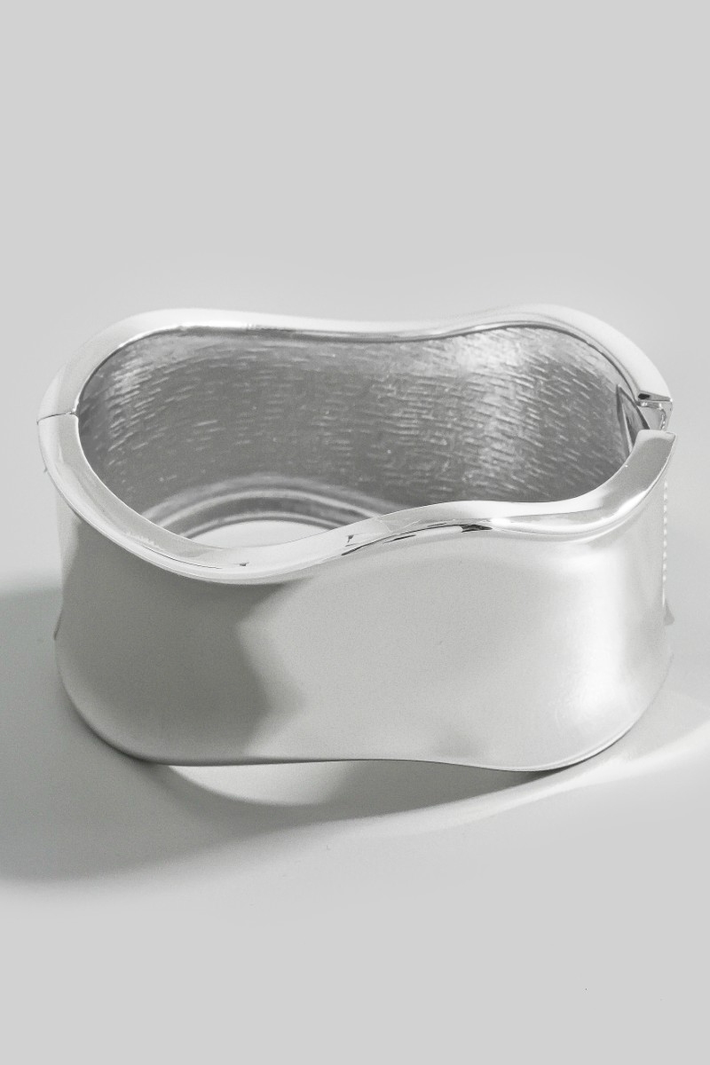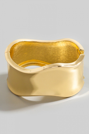 - This bangle bracelet introduces a stunning thick wavy hinge style. Elevate your ensemble with this bangle bracelet that effortlessly captures the essence of refined fashion.