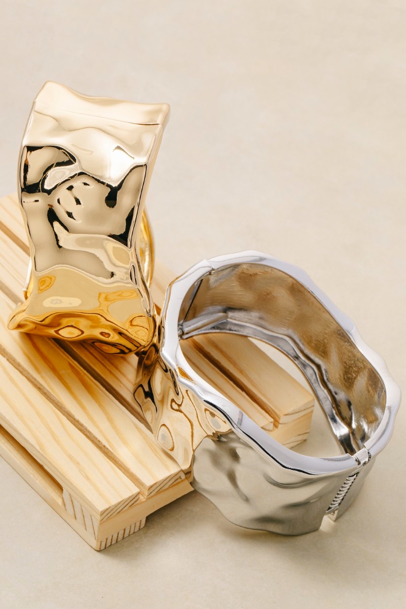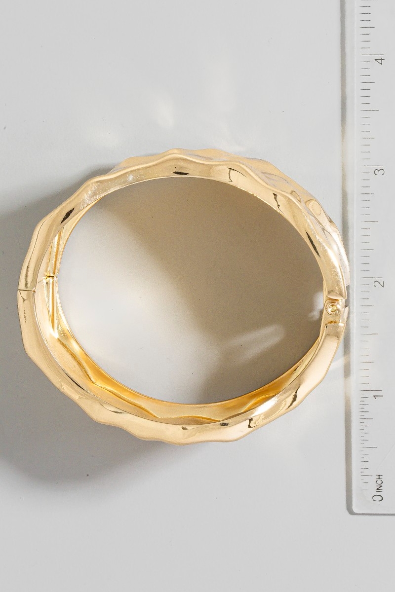 - This bangle bracelet showcases a timeless wide hammered hinge style. Discover the perfect balance of functionality and fashion.
