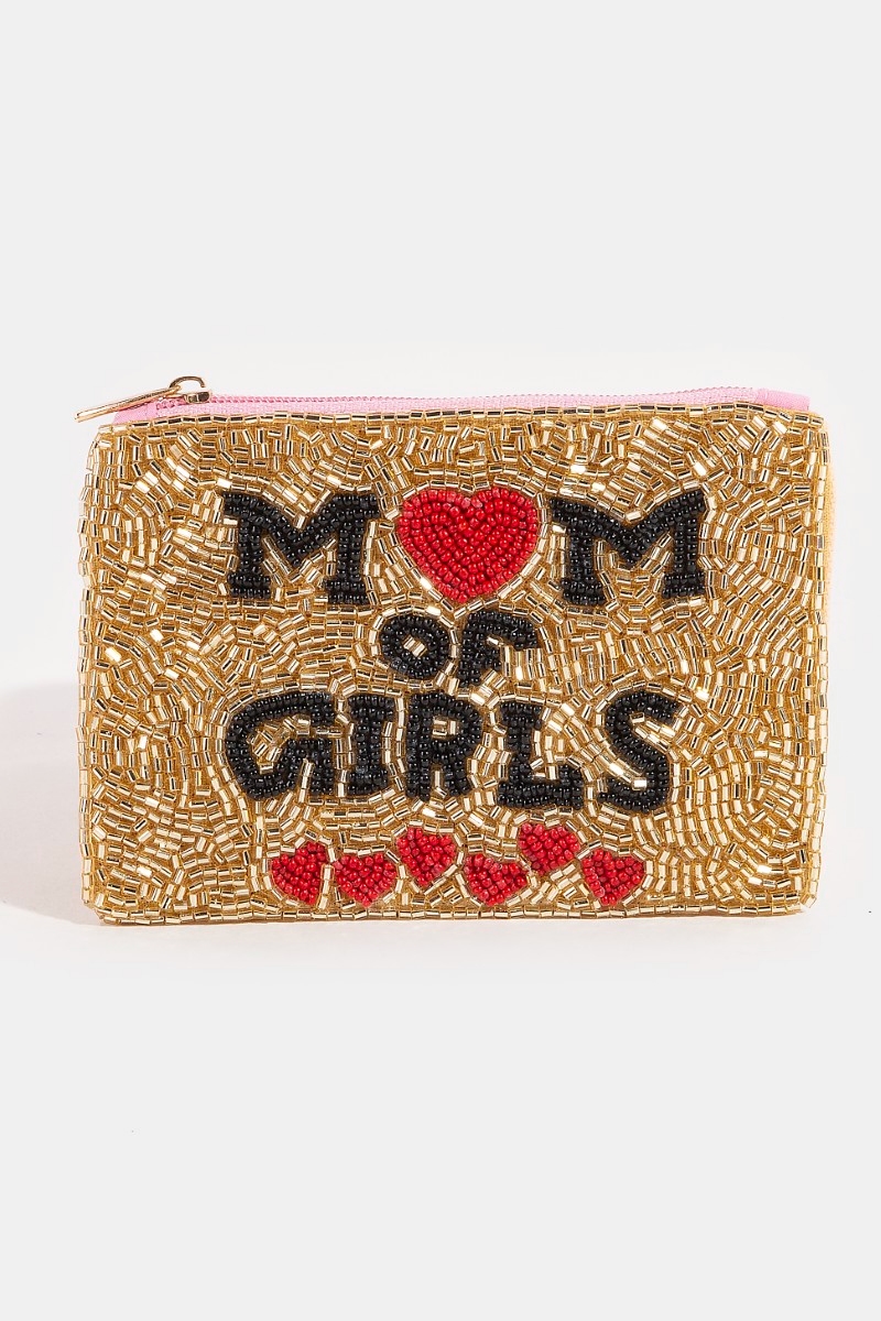 - This coin purse brings a stunning mom of girls hearts seed beaded style. Witness the perfect fusion of style and functionality as this coin purse effortlessly complements your lifestyle.