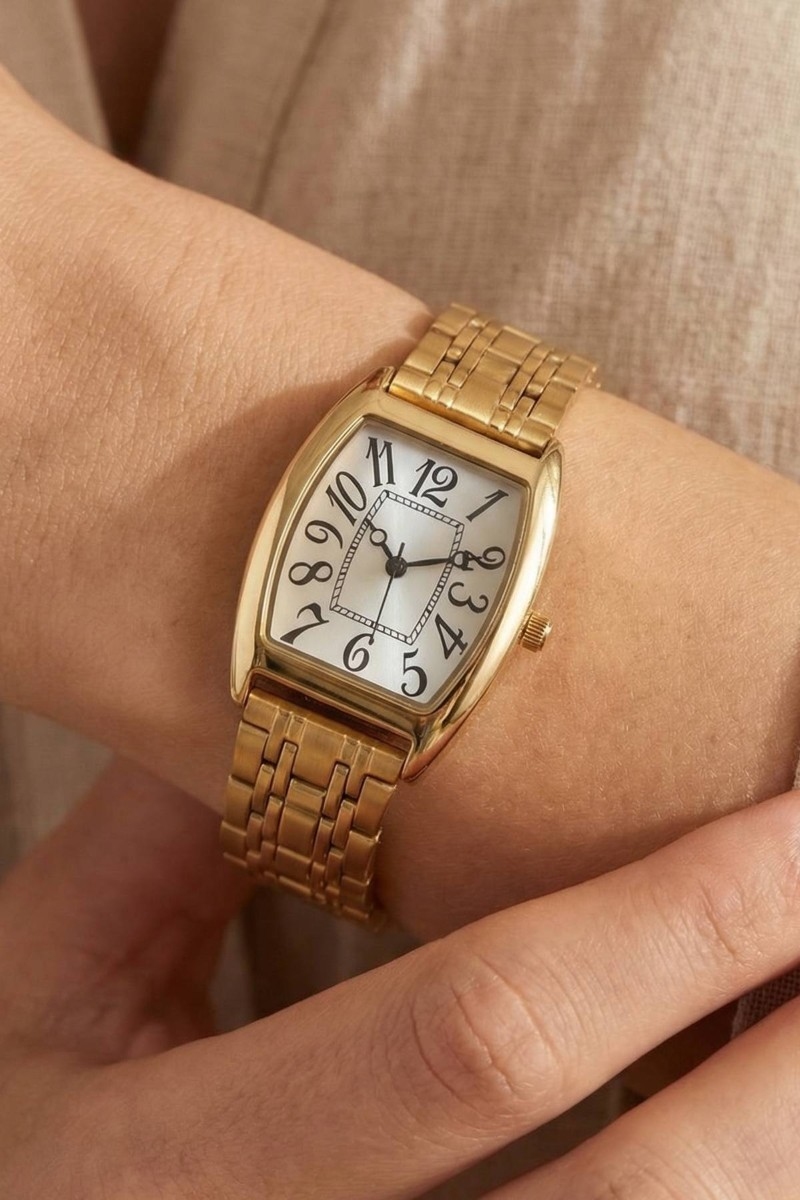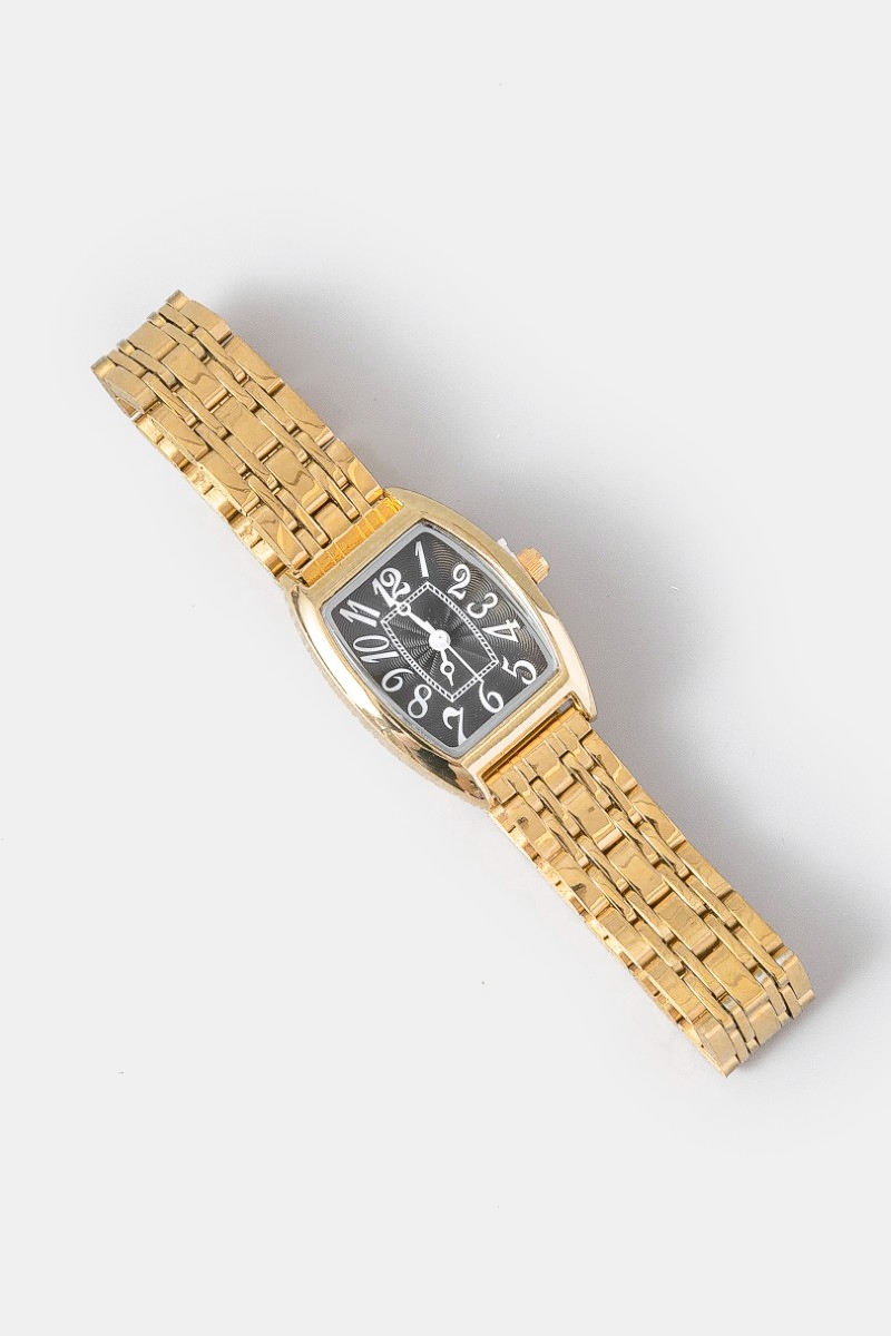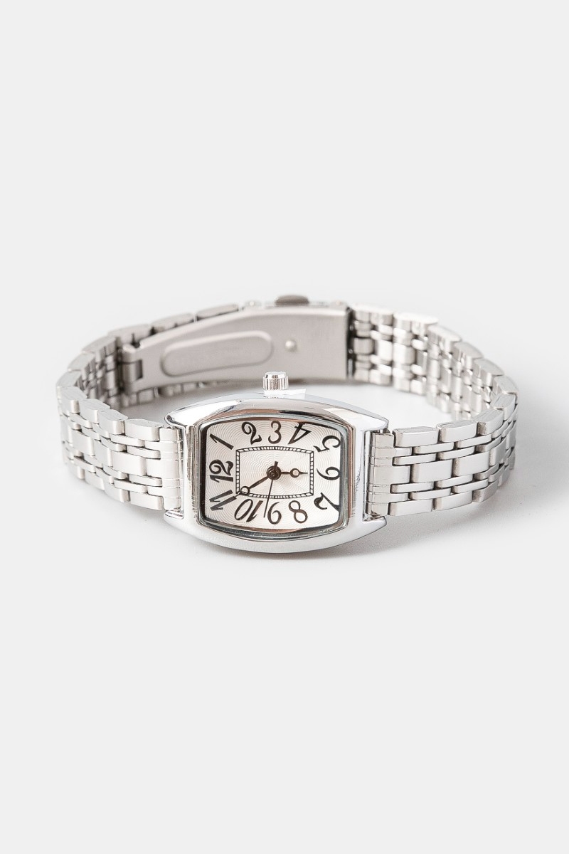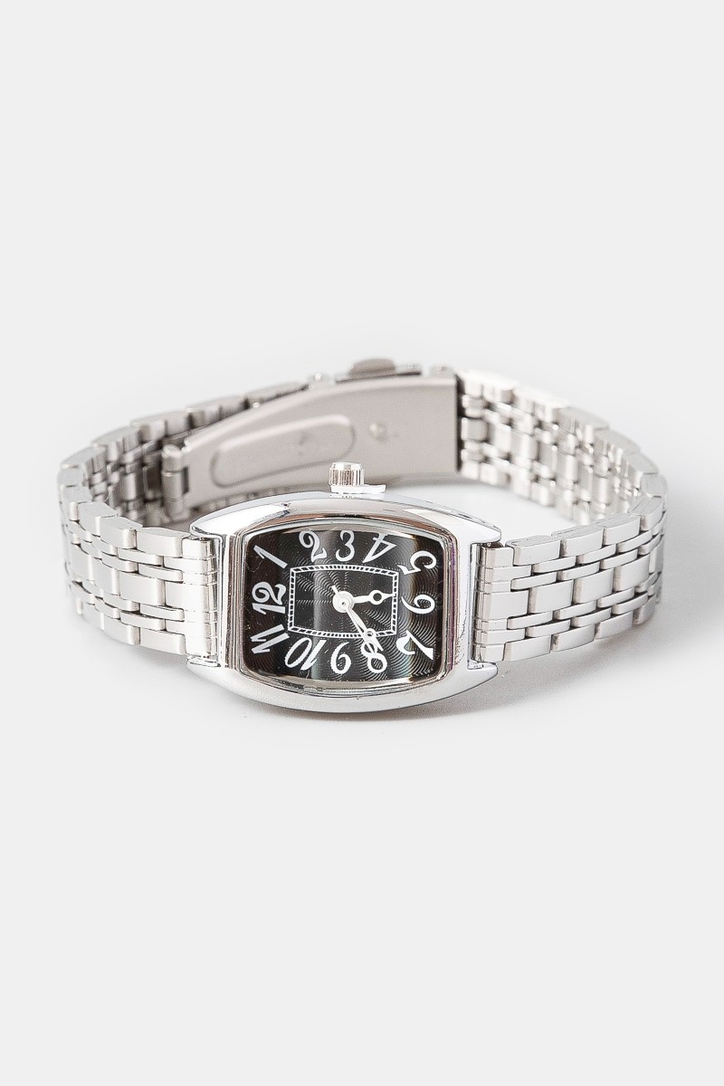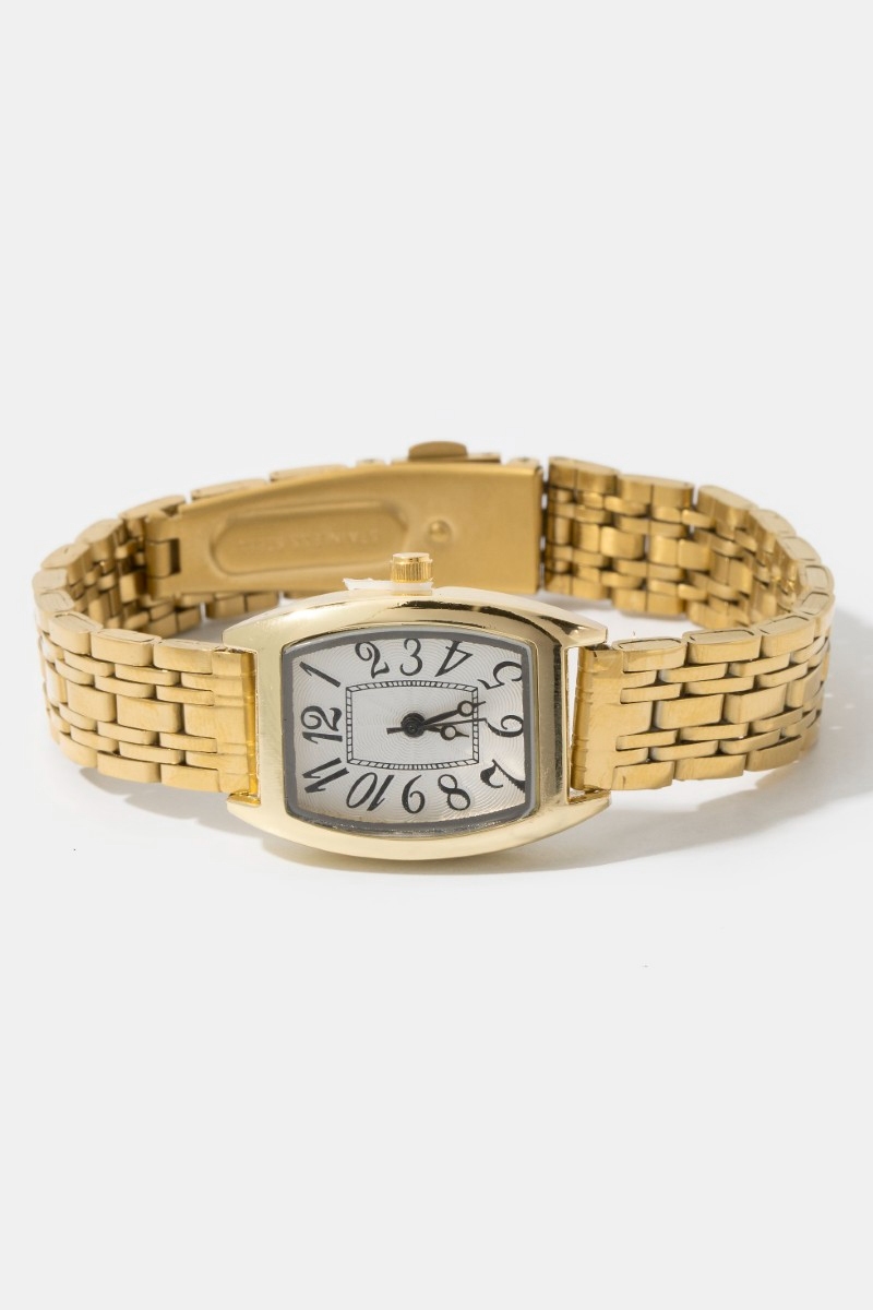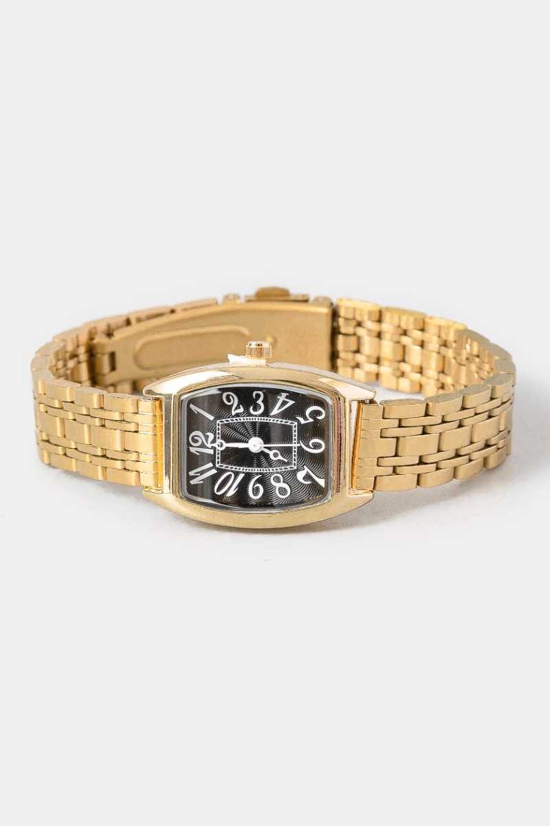 - This accessory displays a fashionable numbered rectangle face watch style. Savor the craftsmanship that goes beyond the ordinary, as this accessory effortlessly captivates attention.