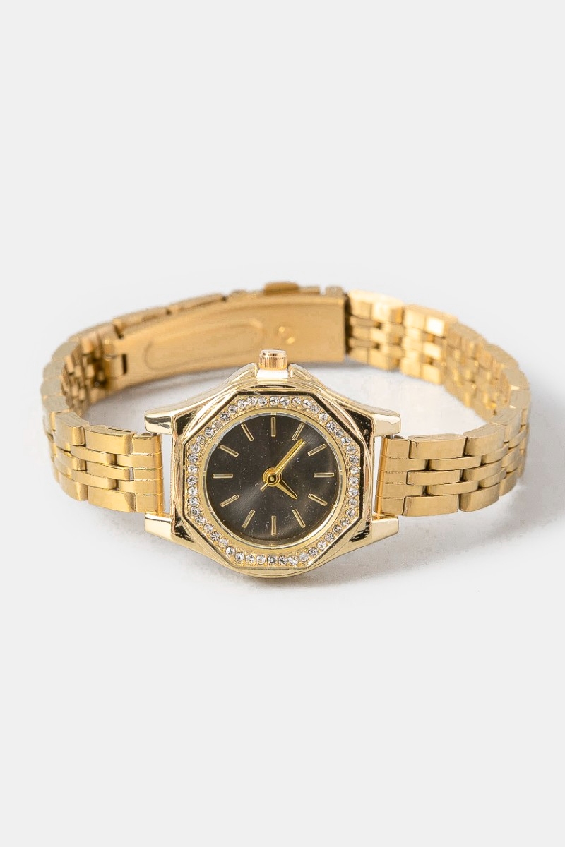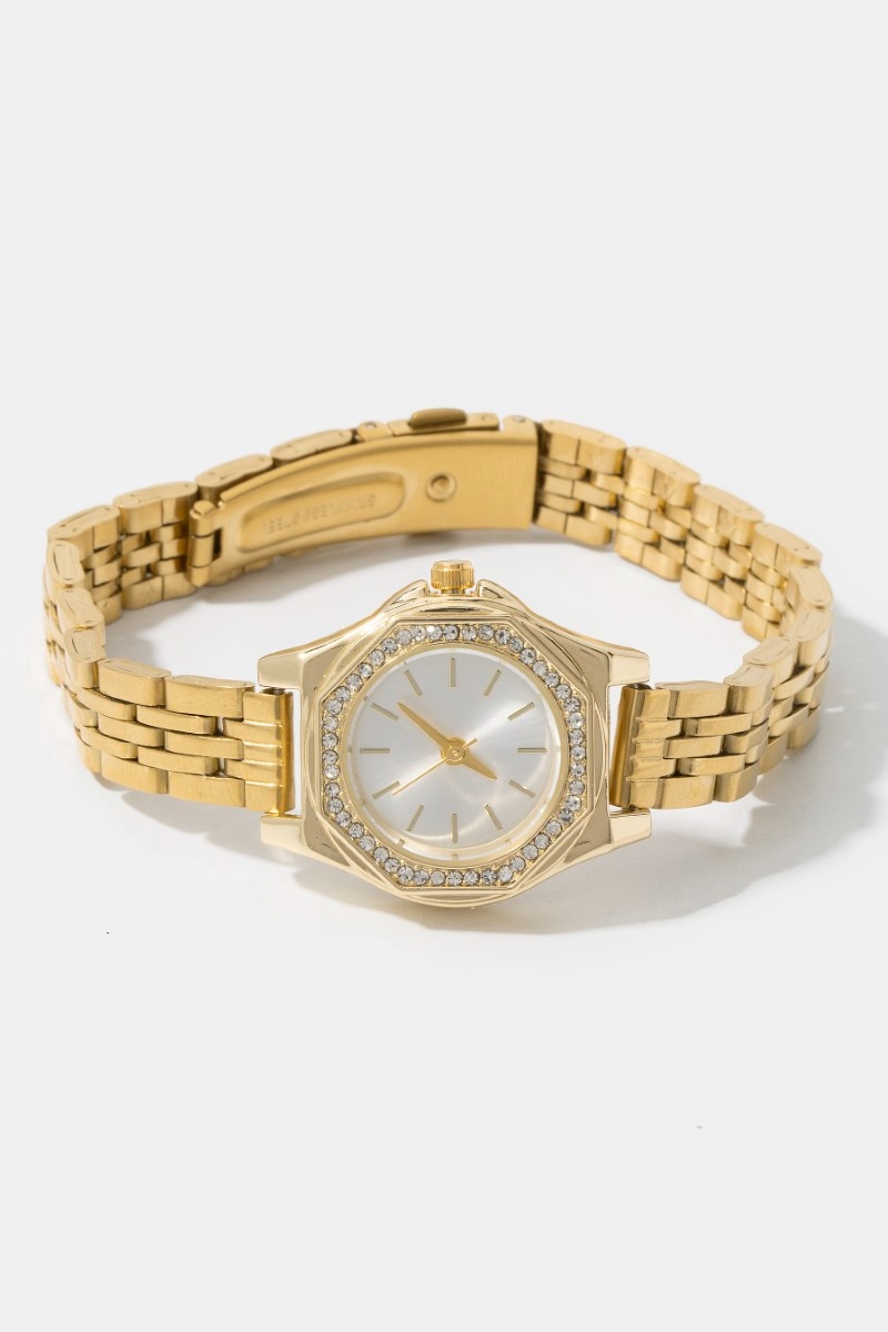 - This accessory adds a modern pave trim octagonal watch style. Elevate your ensemble with this chic, timeless accessory.