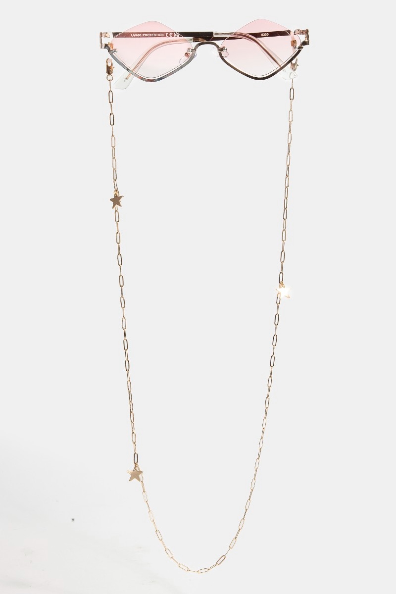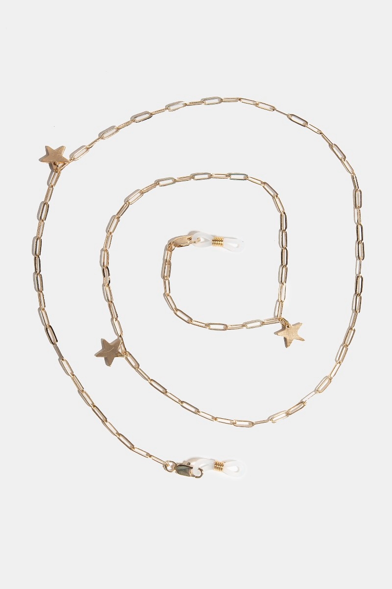 - This accessory brings a unique star charm glasses chain style. Savor the allure of detailed craftsmanship in this exquisite accessory.