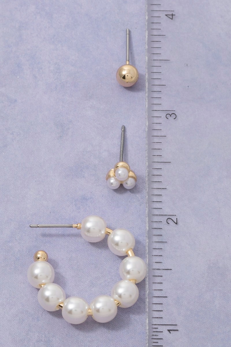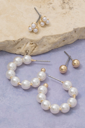 • This pair of stud earrings brings a stunning assorted pearl hoop and set style. Indulge in the artistry of accessorizing with this unique piece.