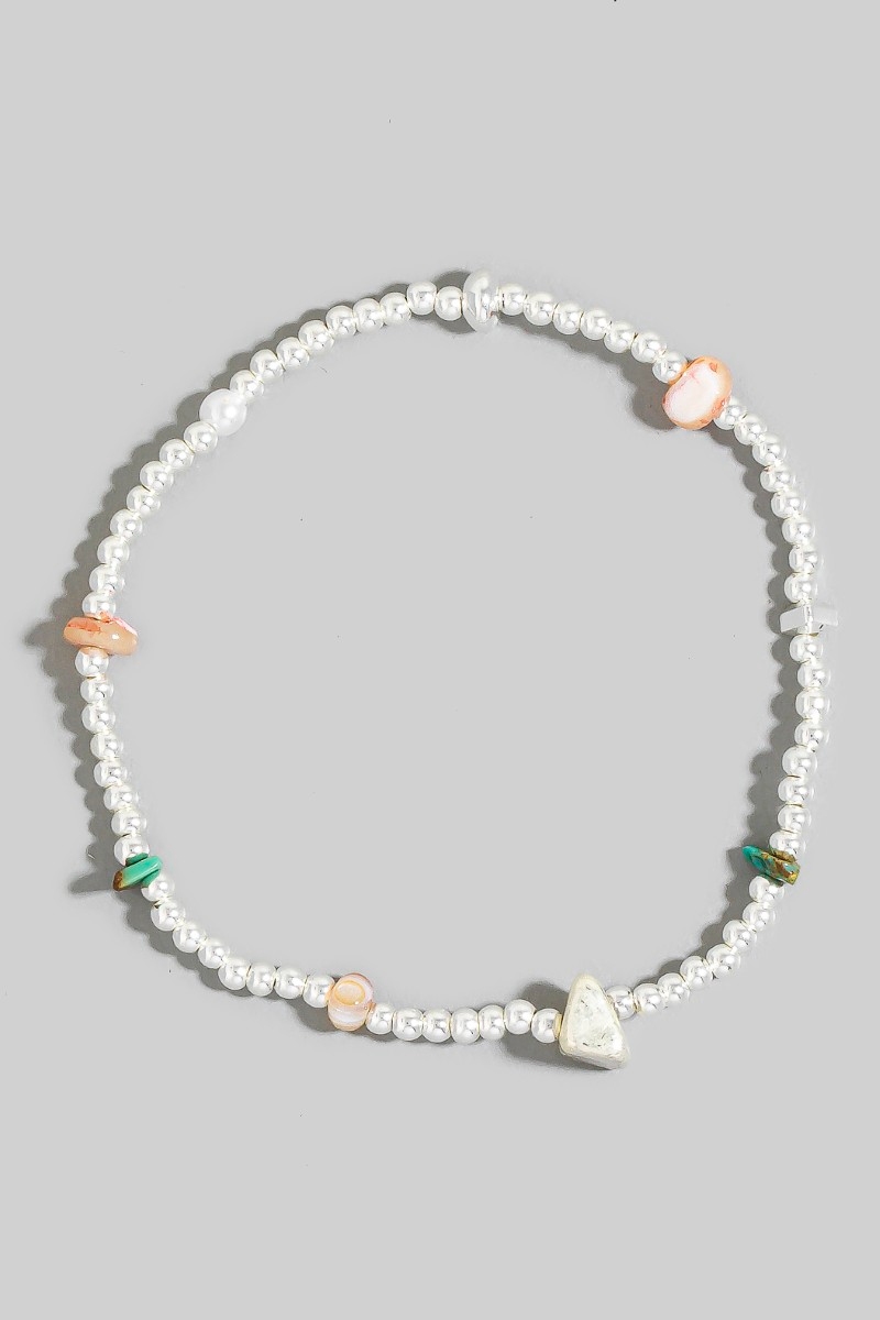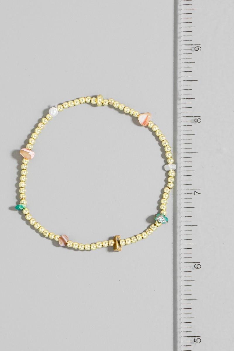 Mixed Pearl And Metallic Beaded Elastic Bracelet