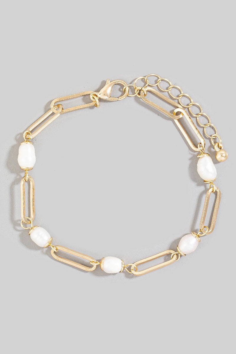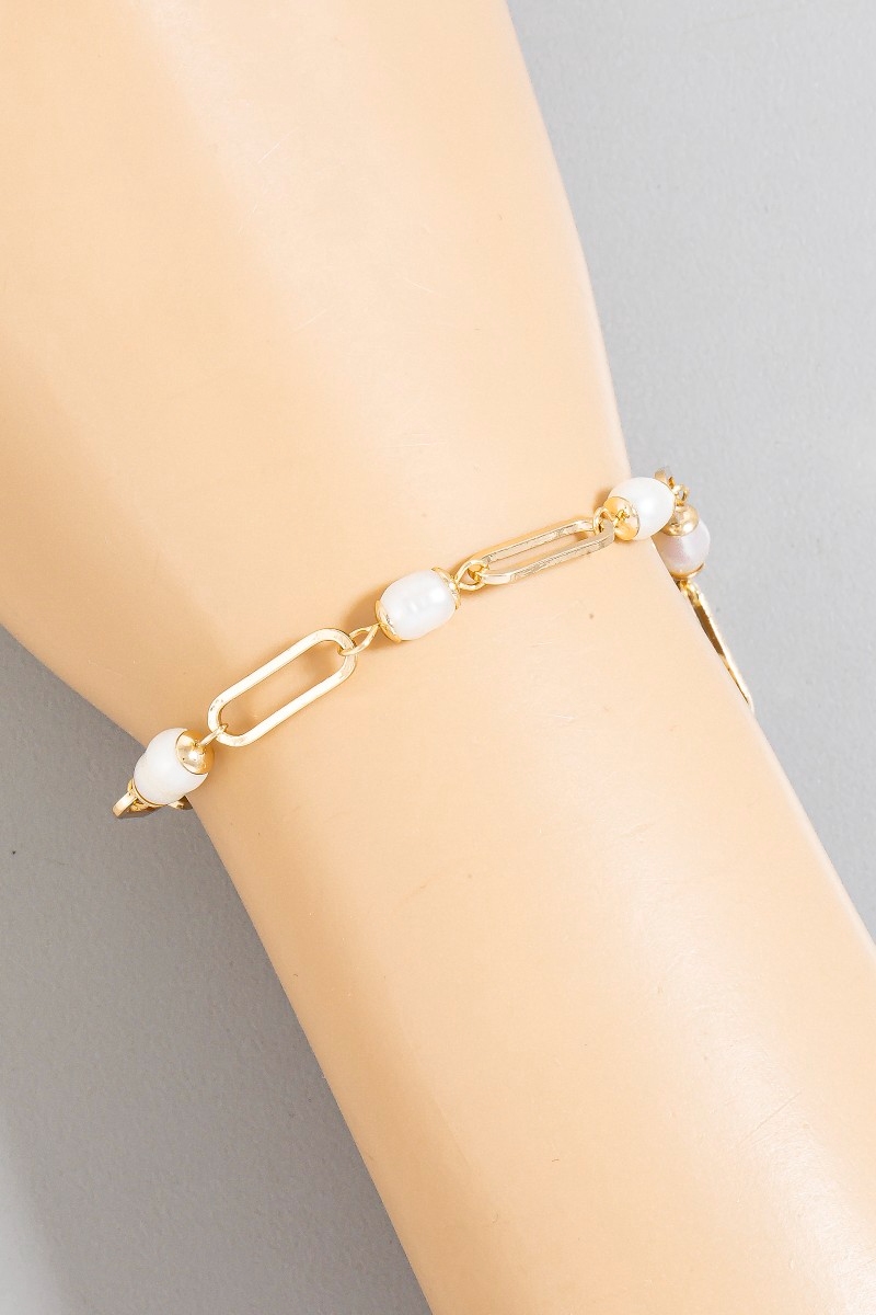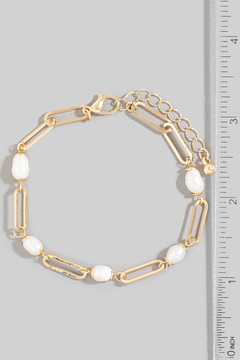 - This chain bracelet brings a stunning freshwater pearl and oval style. Celebrate the art of accessorizing with this piece that effortlessly encapsulates modern trends.