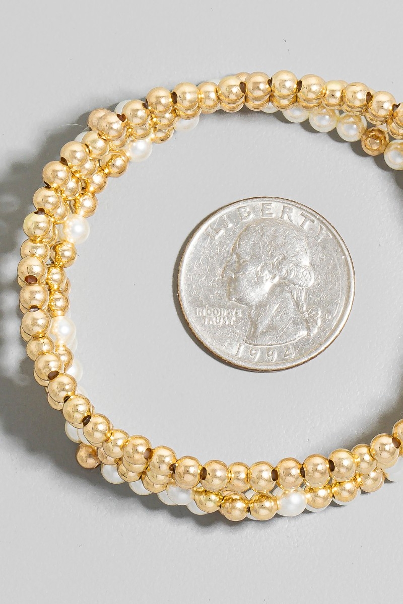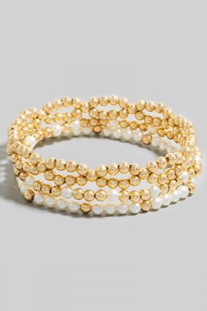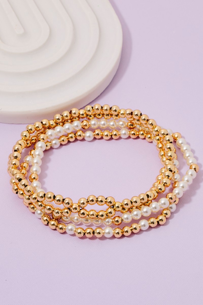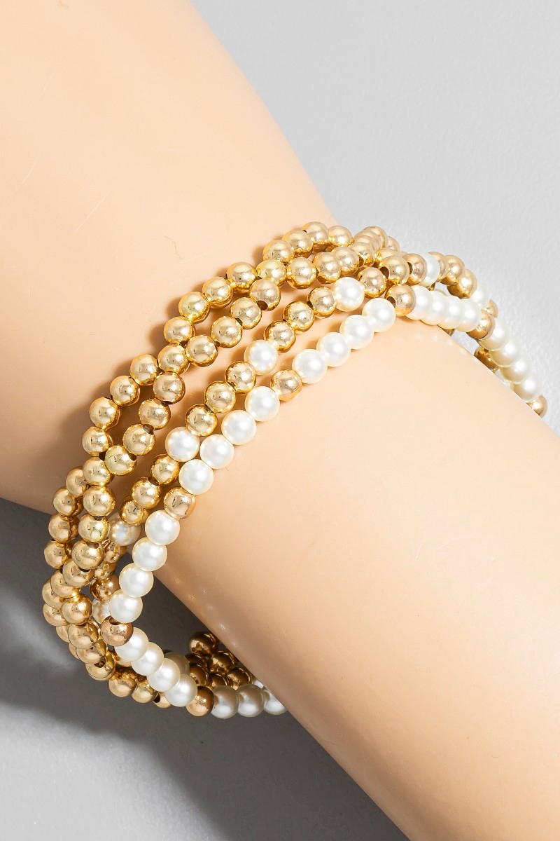 Mixed Pearl And Metallic Beaded Elastic Bracelet