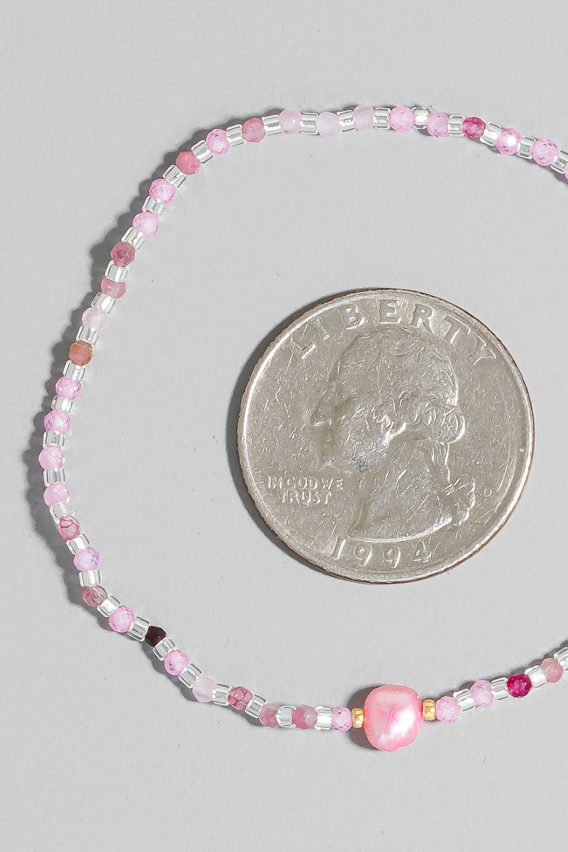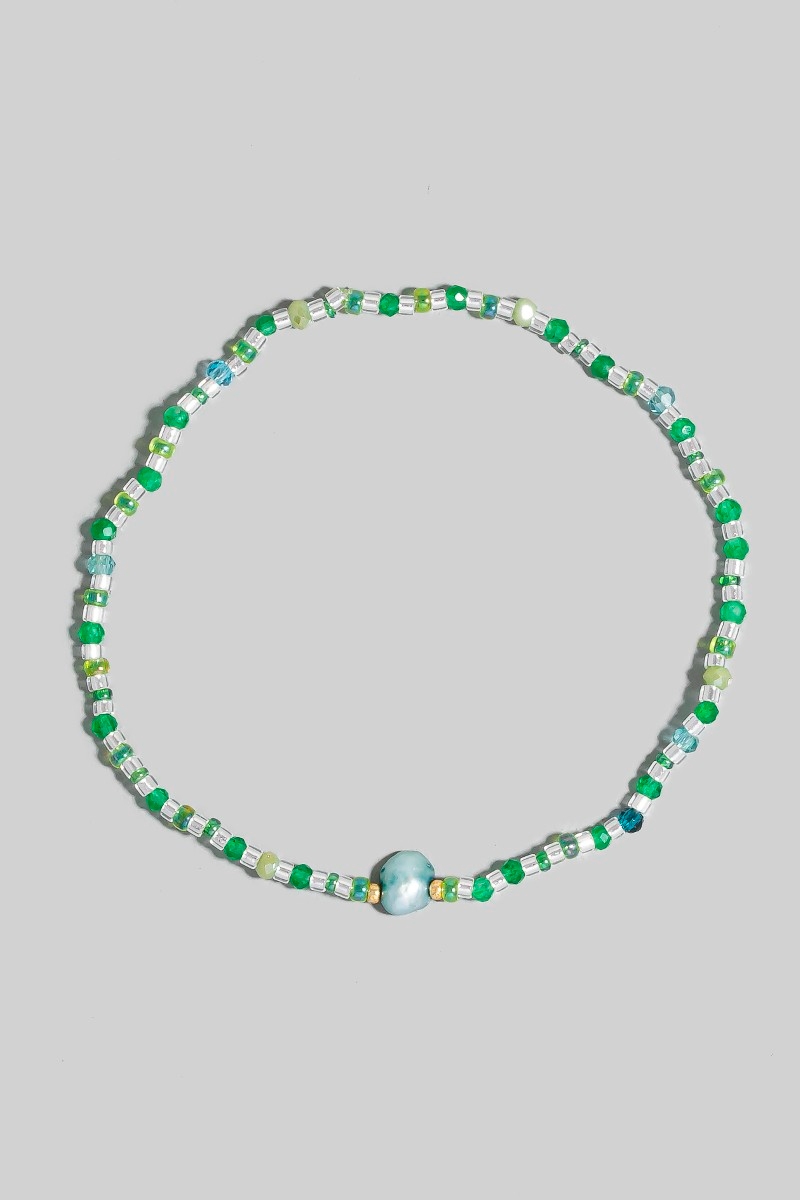 - This bracelet features a fashionable pearl charm glass beaded style. Redefine your look effortlessly with this standout, on-trend piece.
