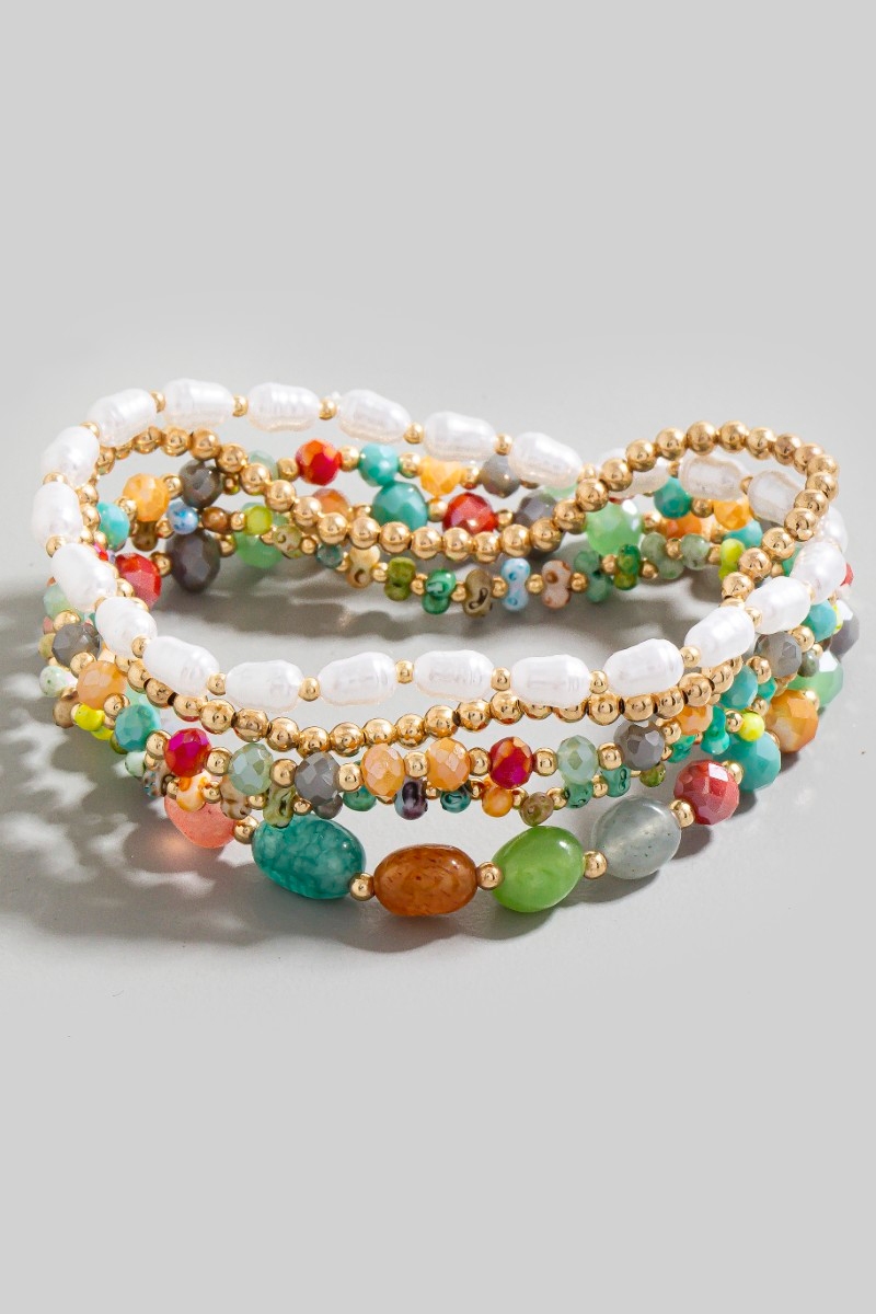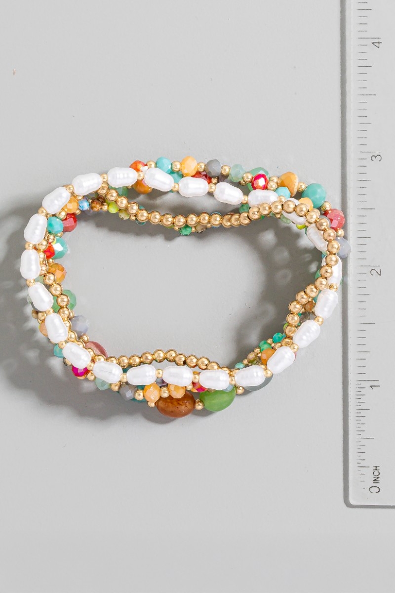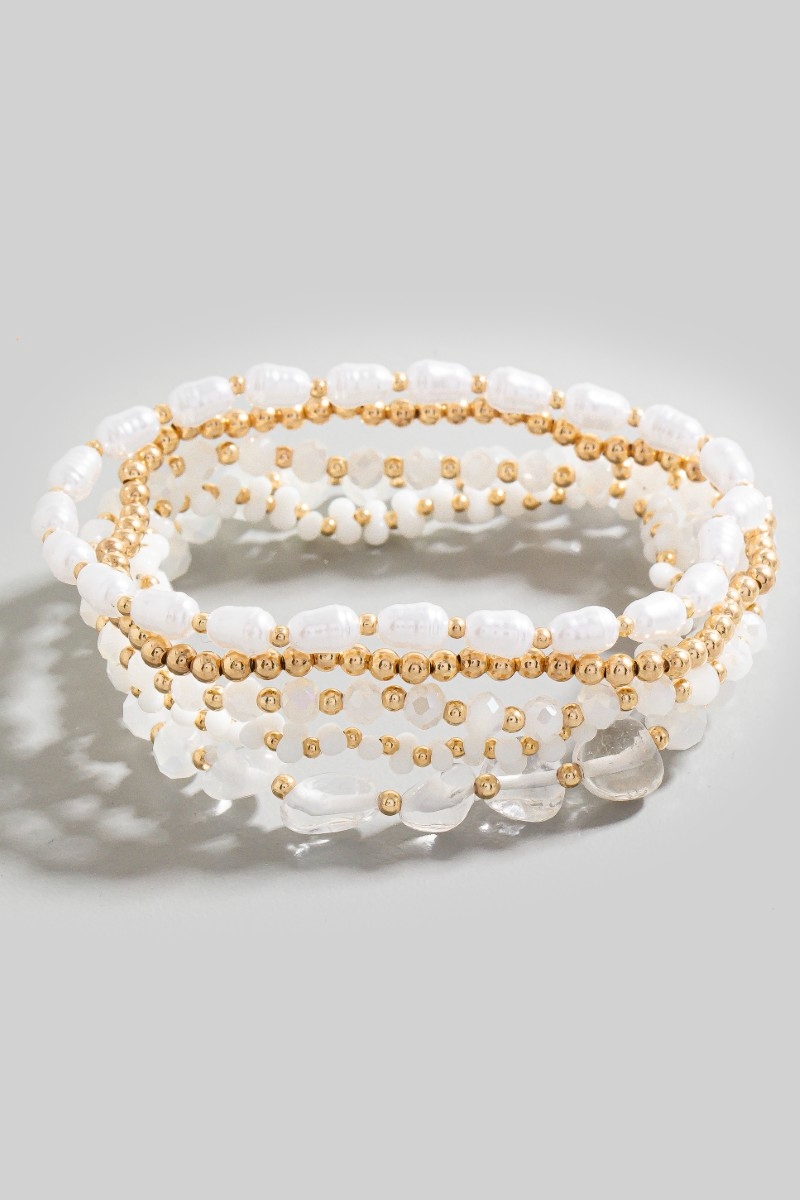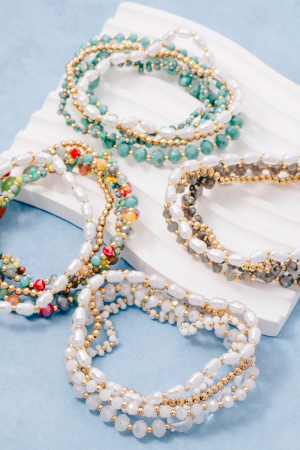- This bracelet brings a unique pearl faceted and metallic beaded set style. Experience refined sophistication with this understated yet stylish piece.