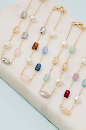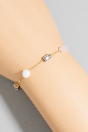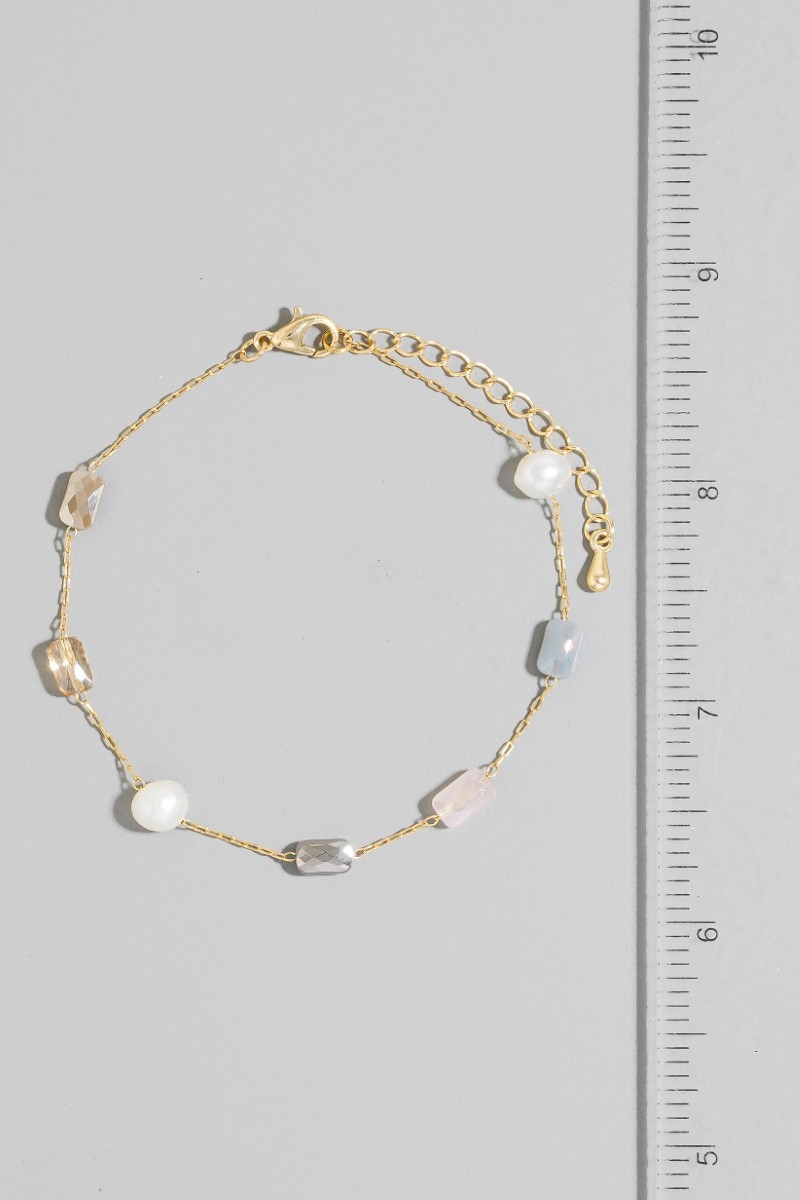 • This chain bracelet displays a fashionable pearl and faceted beads dainty style. Discover the perfect balance of subtlety and flair as this chain bracelet effortlessly completes your look.