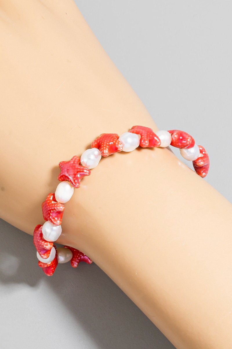- This bracelet introduces a stunning starfish and pearl beaded style. Experience a subtle blend of modernity and classic charm as this bracelet effortlessly adorns your ensemble.