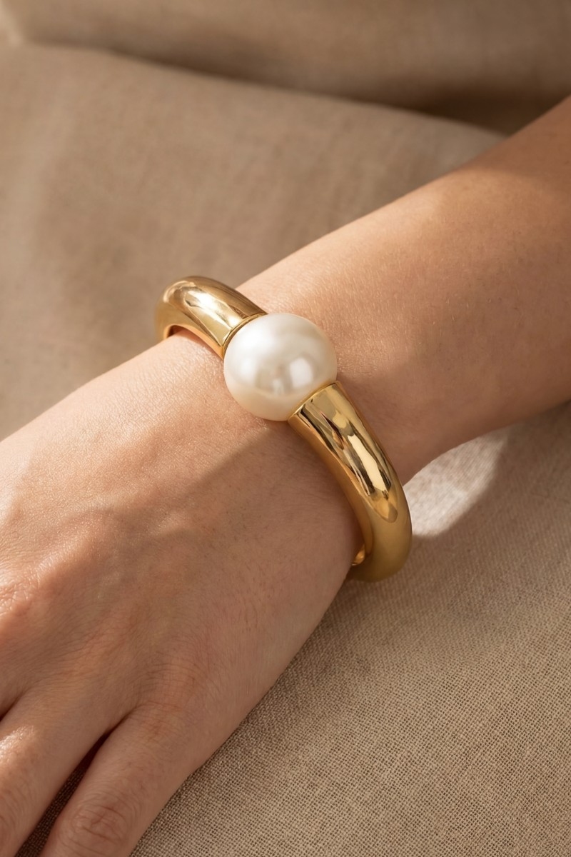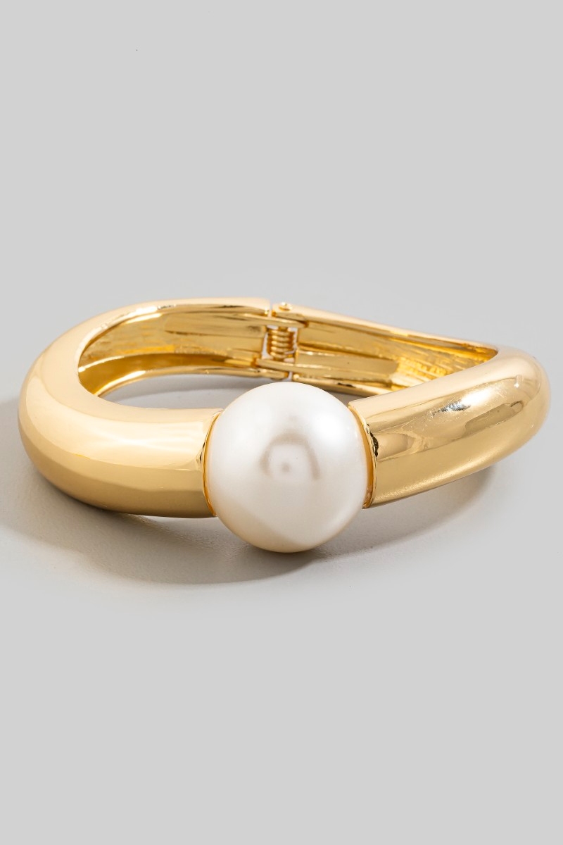 - This bangle bracelet brings a stunning bulky pearl bead metal hinged style. Explore a refined sense of style with this bangle bracelet, seamlessly elevating the chic factor of your look.