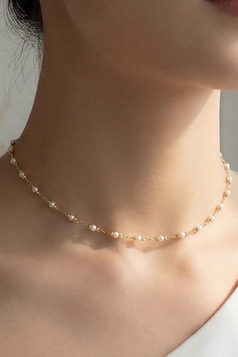 Pearl Bead Twisted Wire Choker Necklace