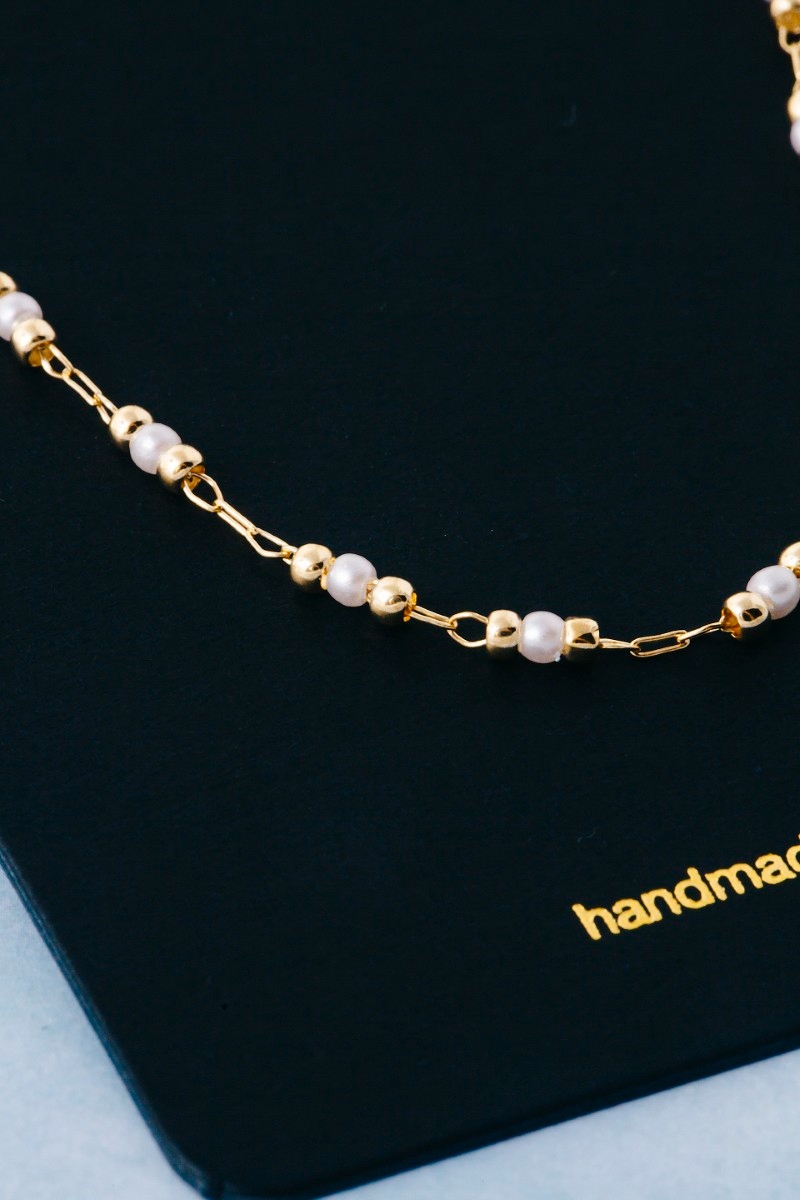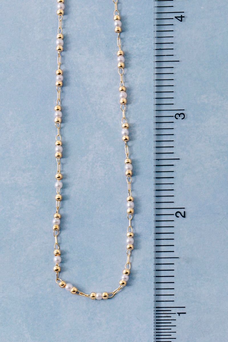 • This chain necklace displays a vibrant dainty ball pearl bead style. Immerse yourself in the details of design, as this chain necklace effortlessly becomes a conversation starter.