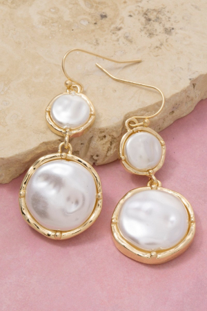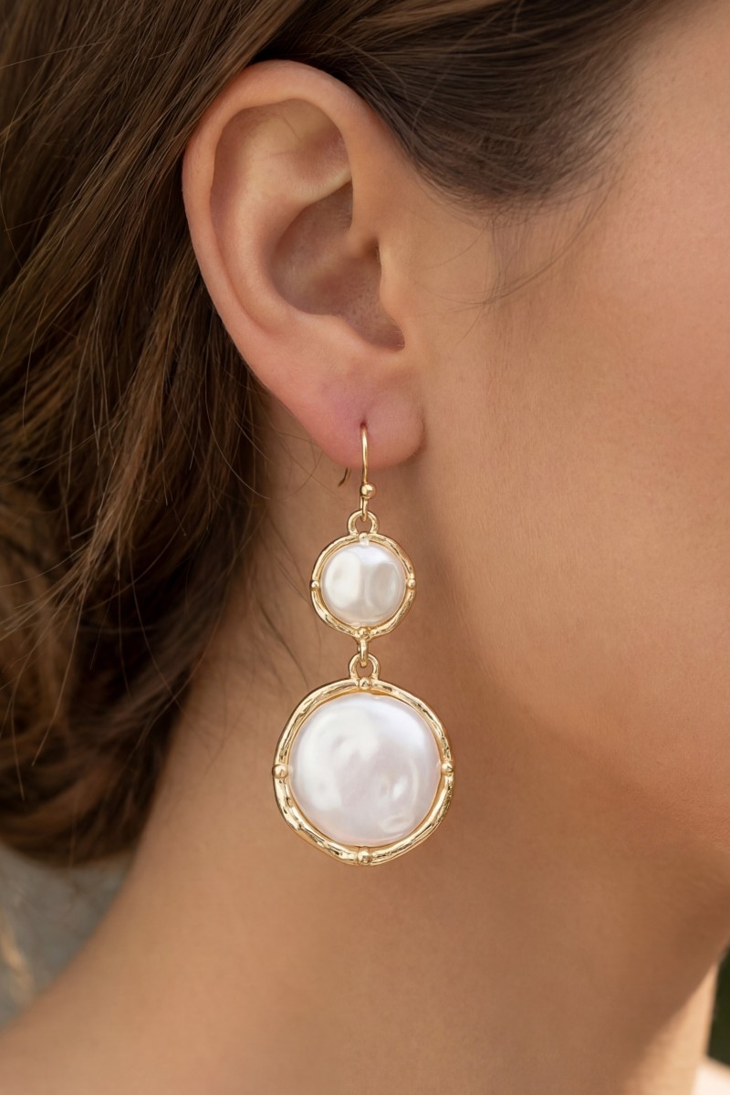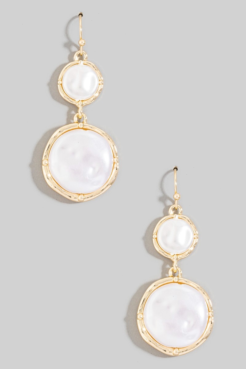 - This pair of drop earrings introduces a stunning double circle pearl style. Experience the joy of accessorizing with this piece that effortlessly combines versatility and charm.
