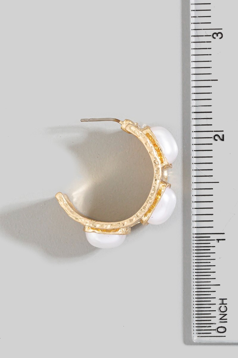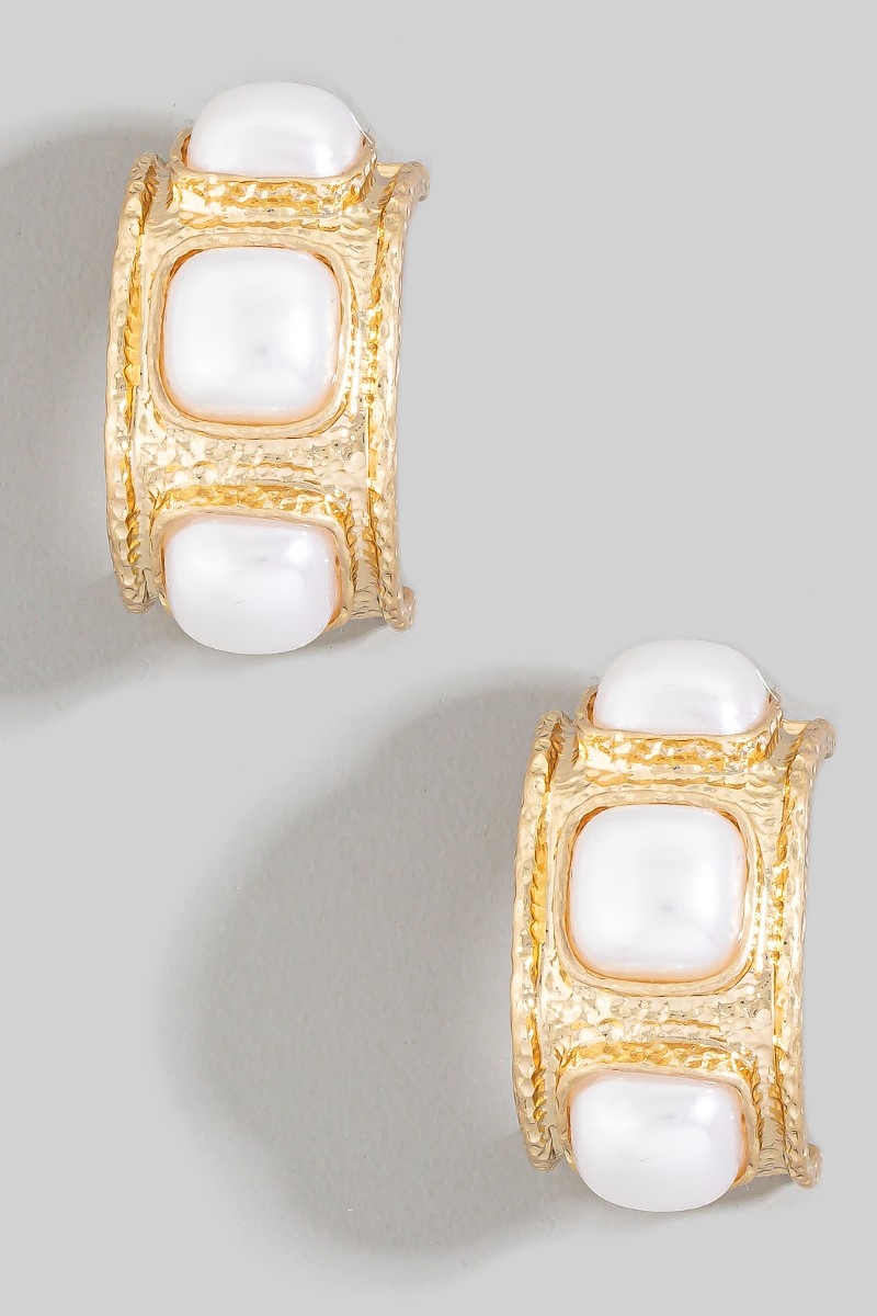 - This pair of earrings introduces a unique hammered triple square pearl style. Immerse yourself in the details of design, as this pair of earrings effortlessly becomes a conversation starter.