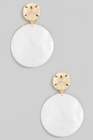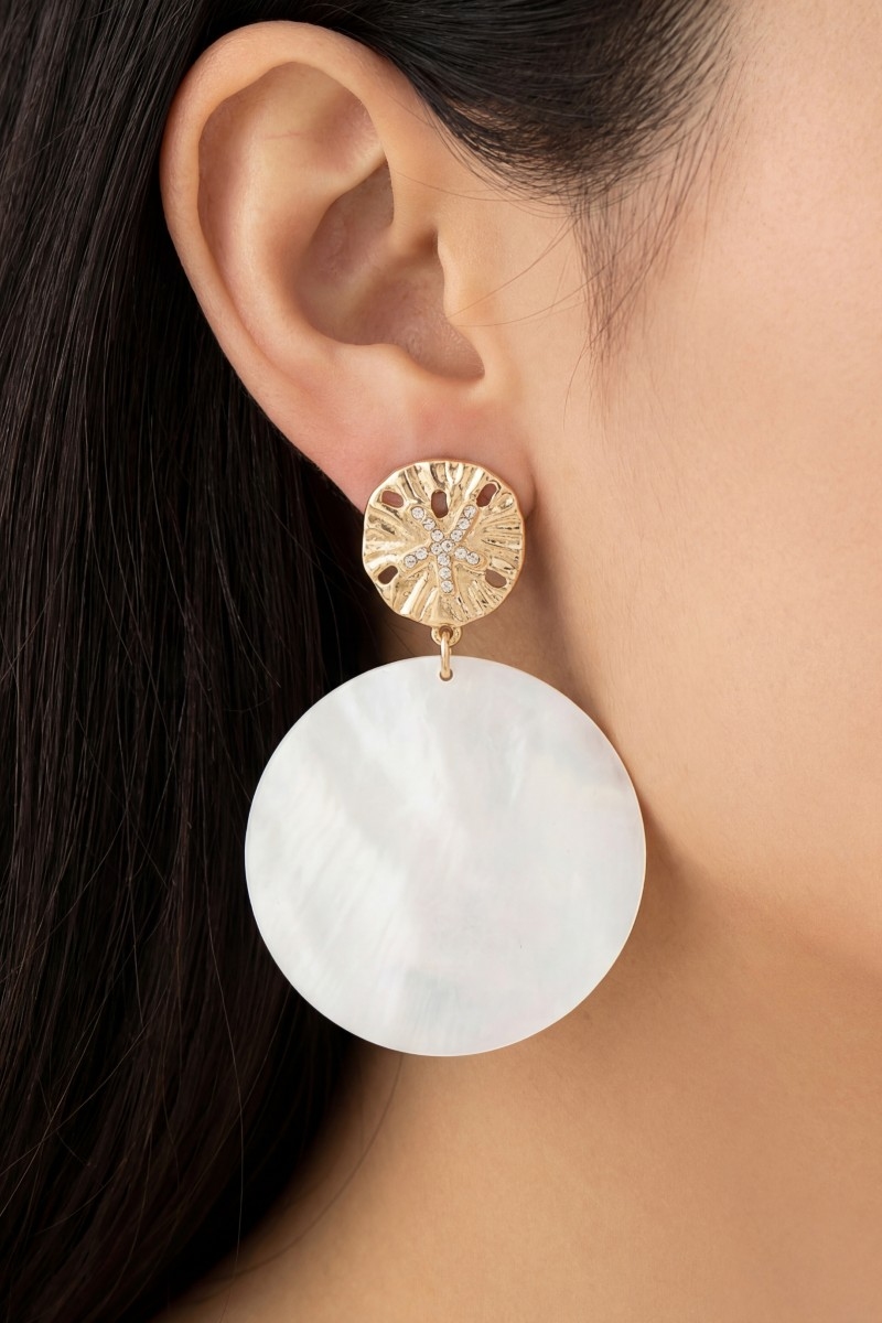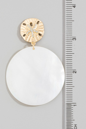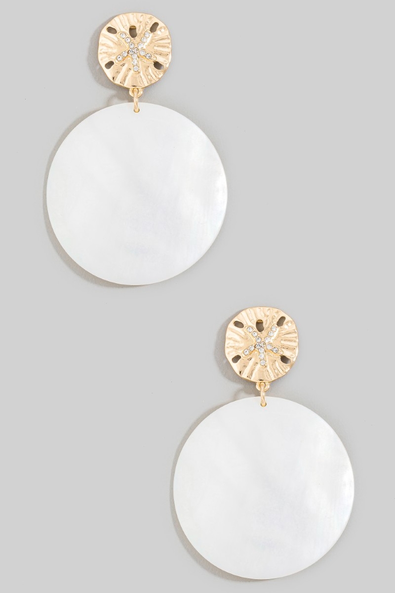 - This pair of dangle earrings brings a luxurious large mother of pearl disc and sand dollar stud style. Experience refined sophistication with this understated yet stylish piece.