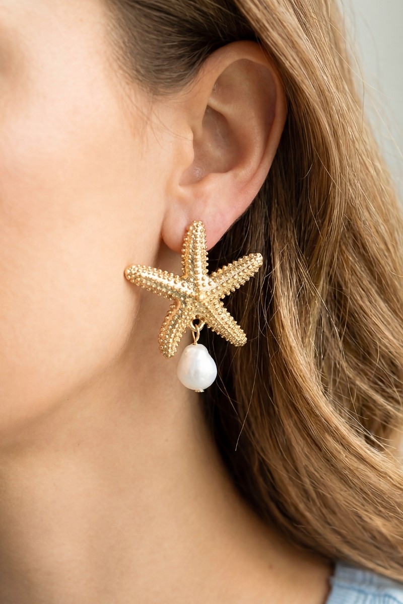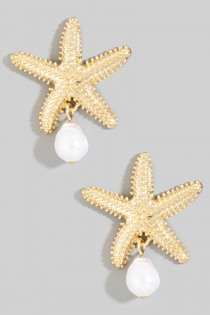 - This pair of drop earrings brings a luxurious metallic starfish with pearl style. Celebrate the art of accessorizing with this piece that effortlessly encapsulates modern trends.