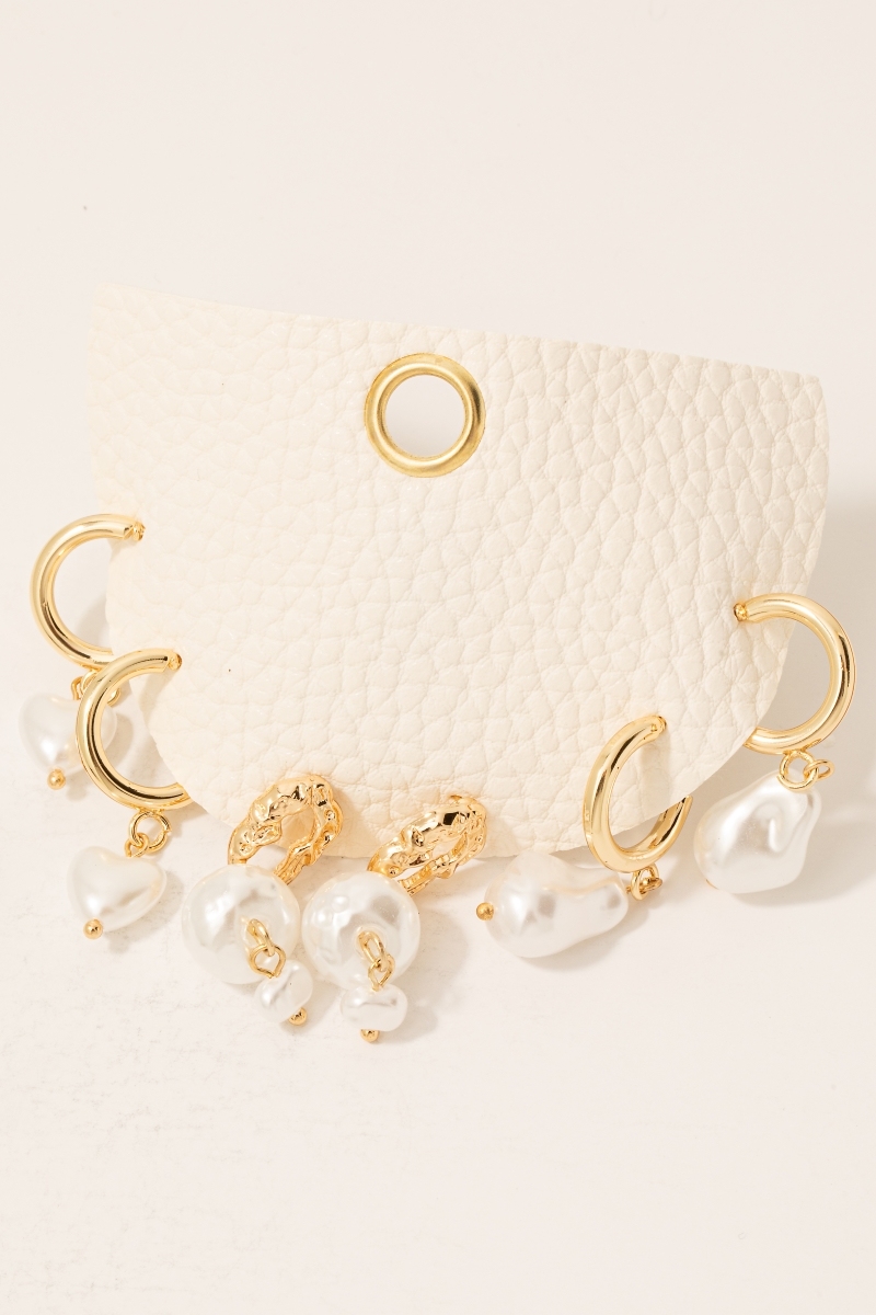• This pair of hoop earrings displays a vibrant mixed pearl charms set style. Experience refined sophistication with this understated yet stylish piece.