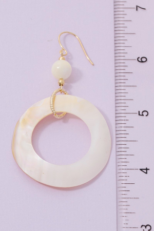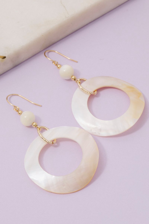 - This pair of drop earrings showcases a unique mother of pearl shell circle cutout style. Delight in the nuanced details that make this pair of drop earrings a testament to fine design and impeccable taste.