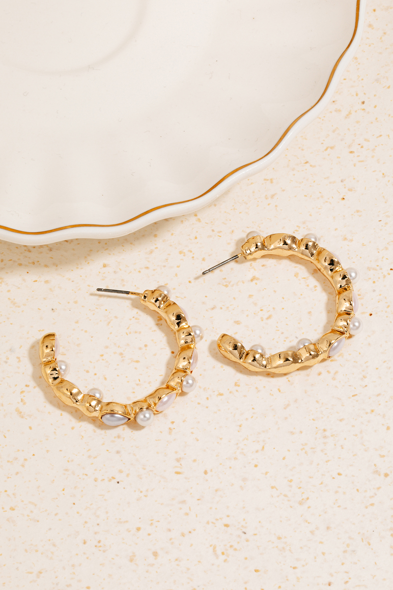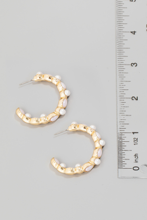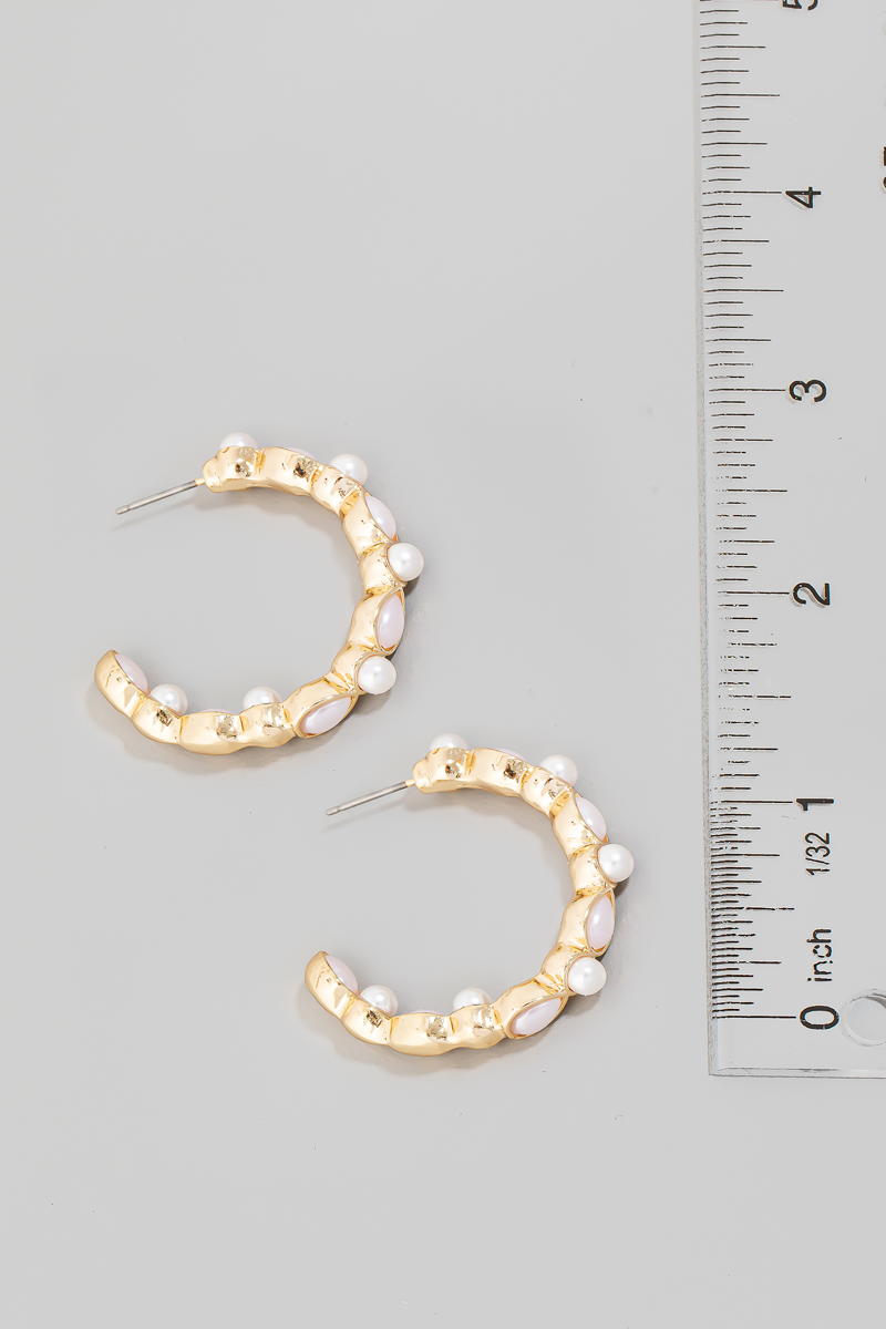 • This pair of hoop earrings displays a vibrant pearl ball and tear studded style. Indulge in the allure of exquisite craftsmanship as this accessory effortlessly adds a touch of luxury to your attire.