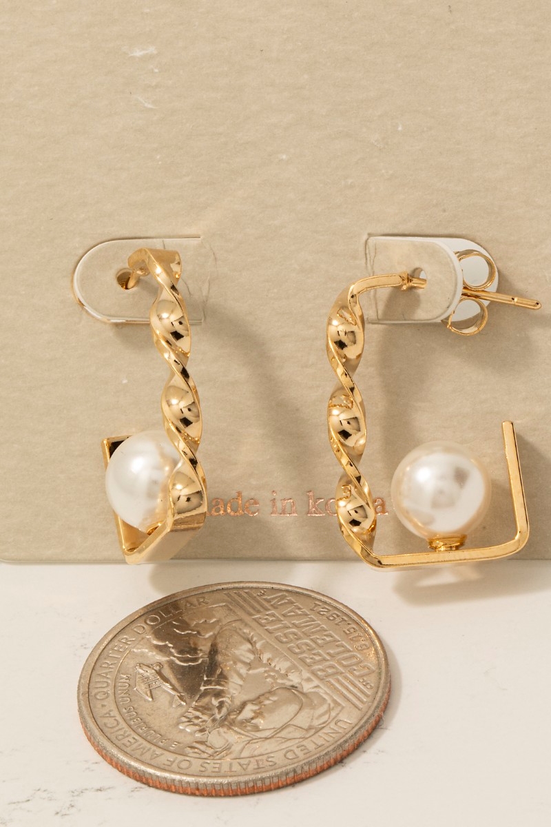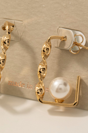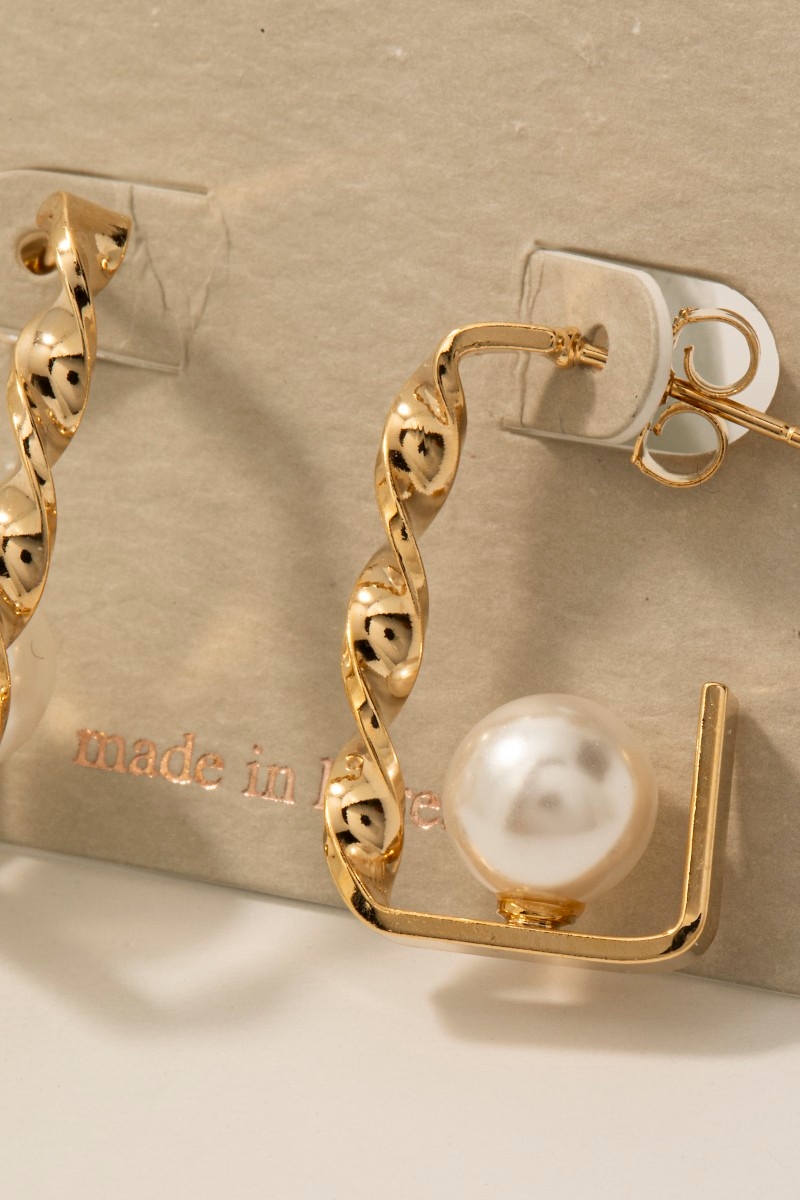 • This pair of hoop earrings showcases a timeless pearl bead rectangle style. Redefine your look effortlessly with this standout, on-trend piece.