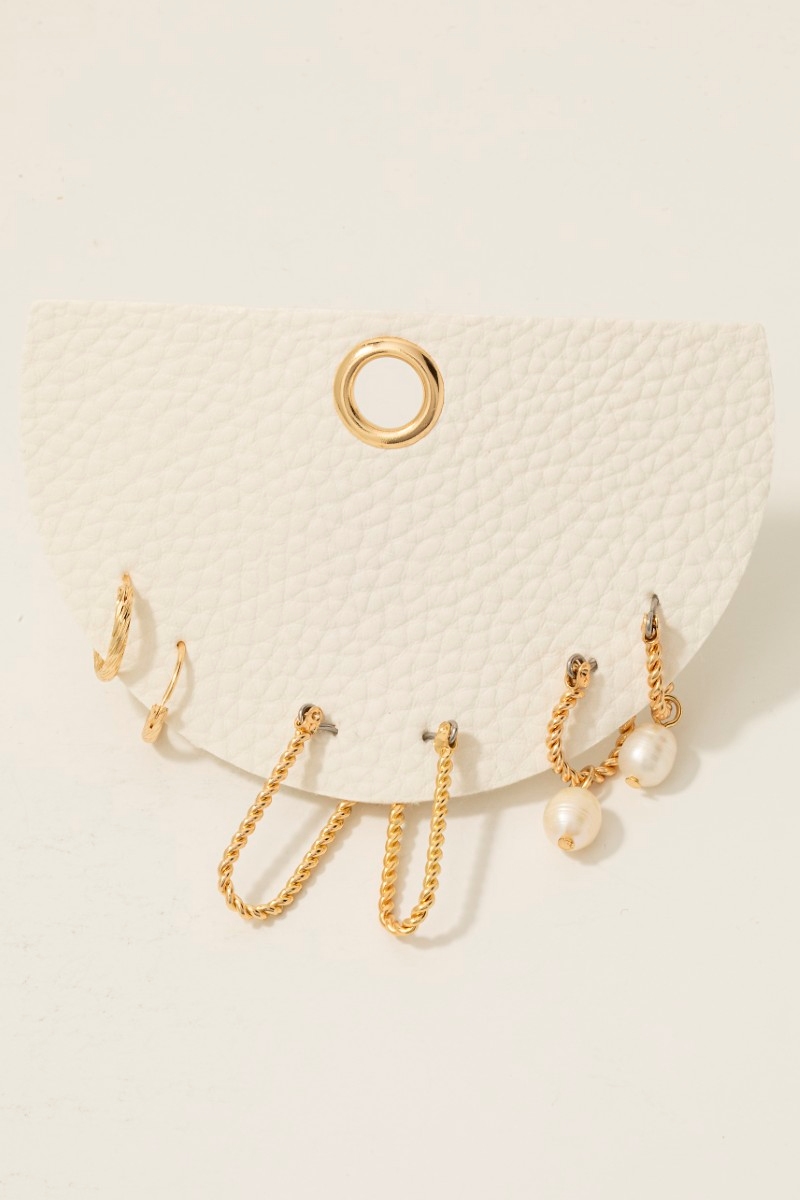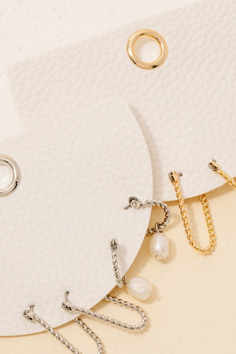 - This pair of hoop earrings features a fashionable pearl charm 3pc twisted set style. Witness the transformative power of accessories as this piece effortlessly redefines your fashion narrative.