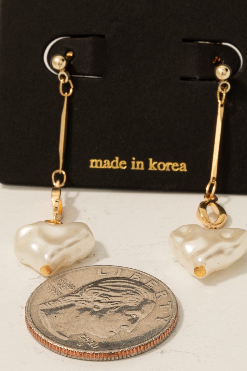 Metallic And Pearl Rectangle Stud Dangle Earrings