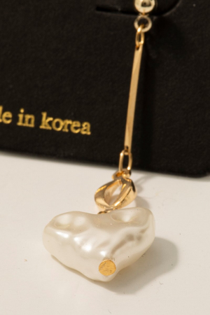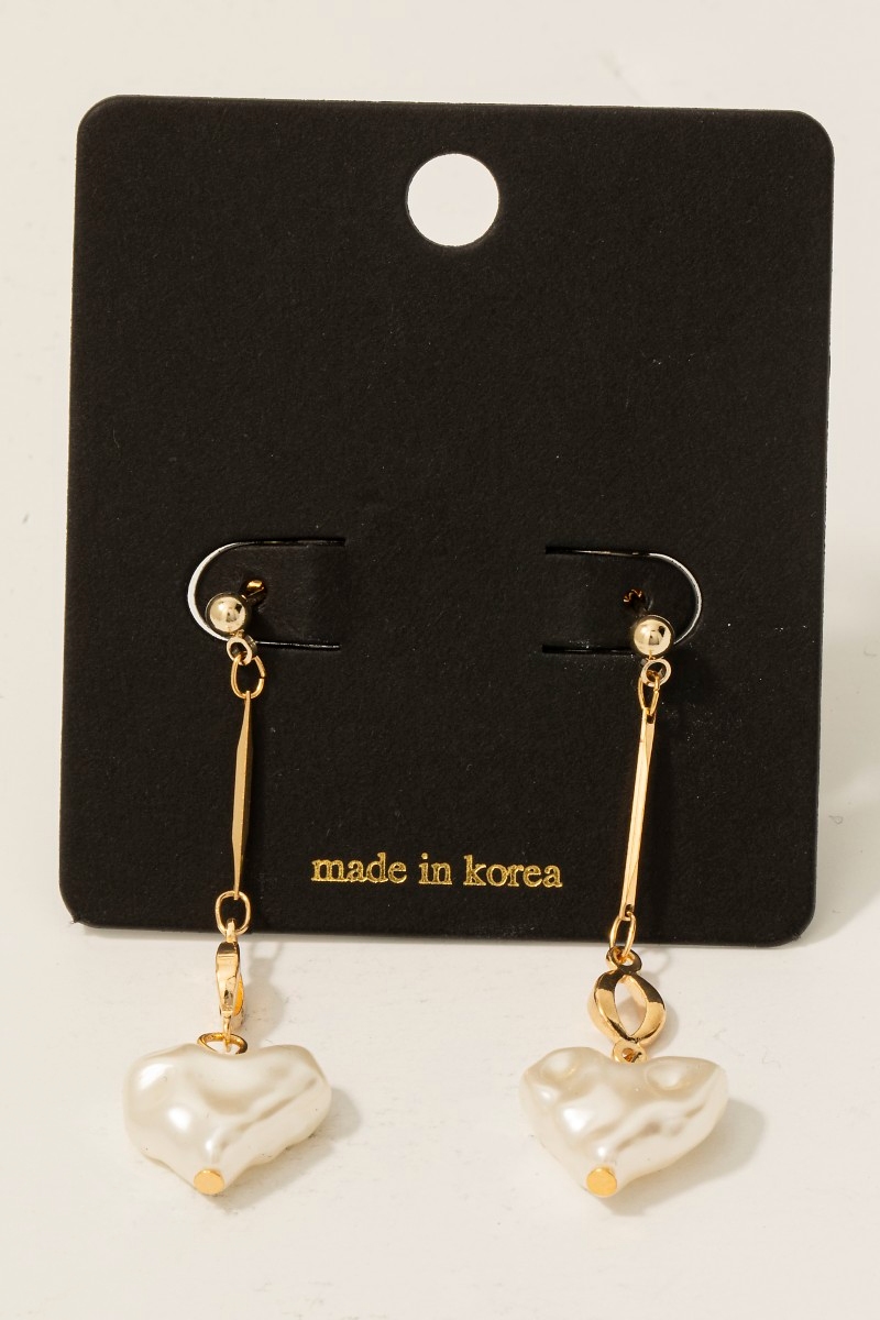 • This pair of stud earrings brings a luxurious pearl heart and bar dangle style. Unveil modern elegance with this subtly intricate pair of stud earrings.
