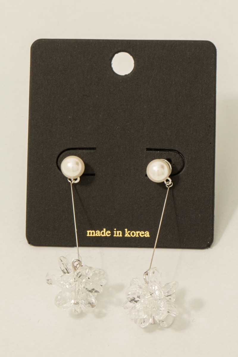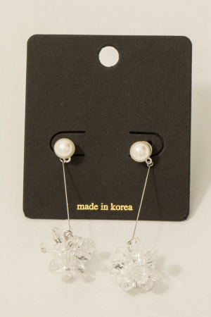 • This pair of dangle earrings brings a luxurious pearl and acrylic flower bar style. Revel in the intricate design that effortlessly distinguishes this pair of dangle earrings, making it a statement piece.
