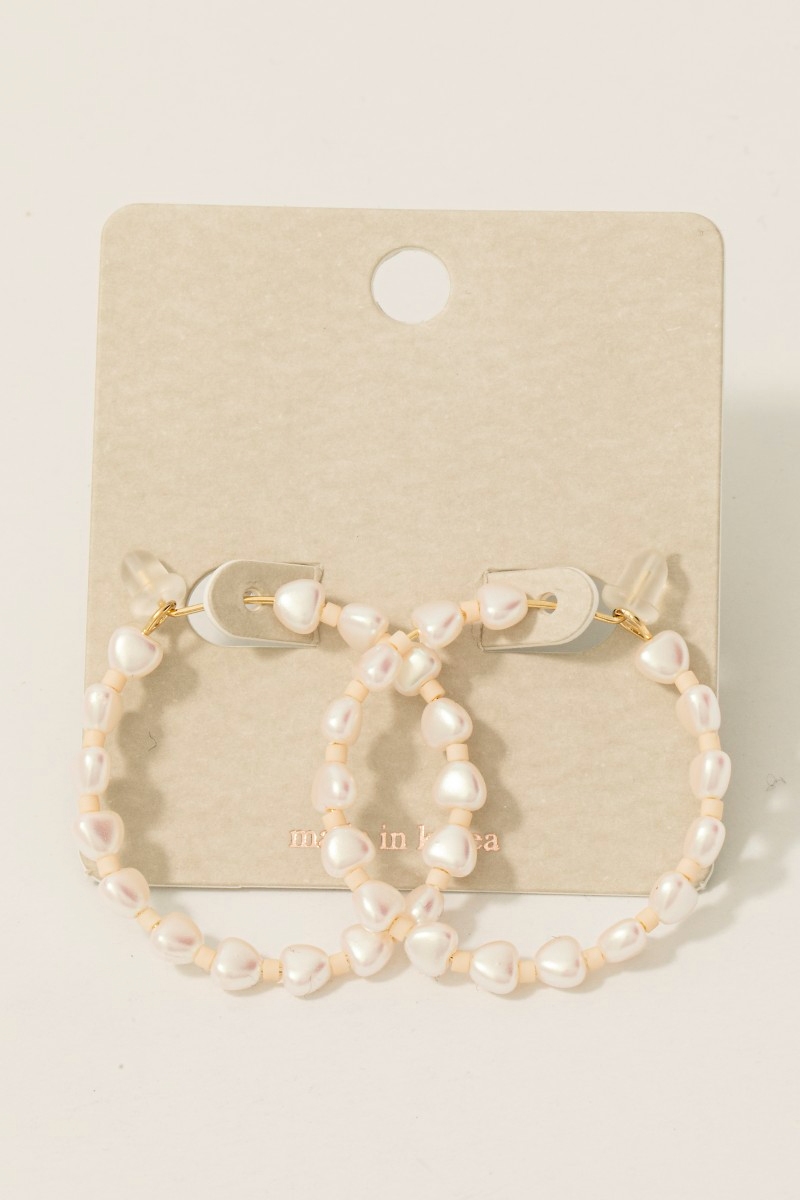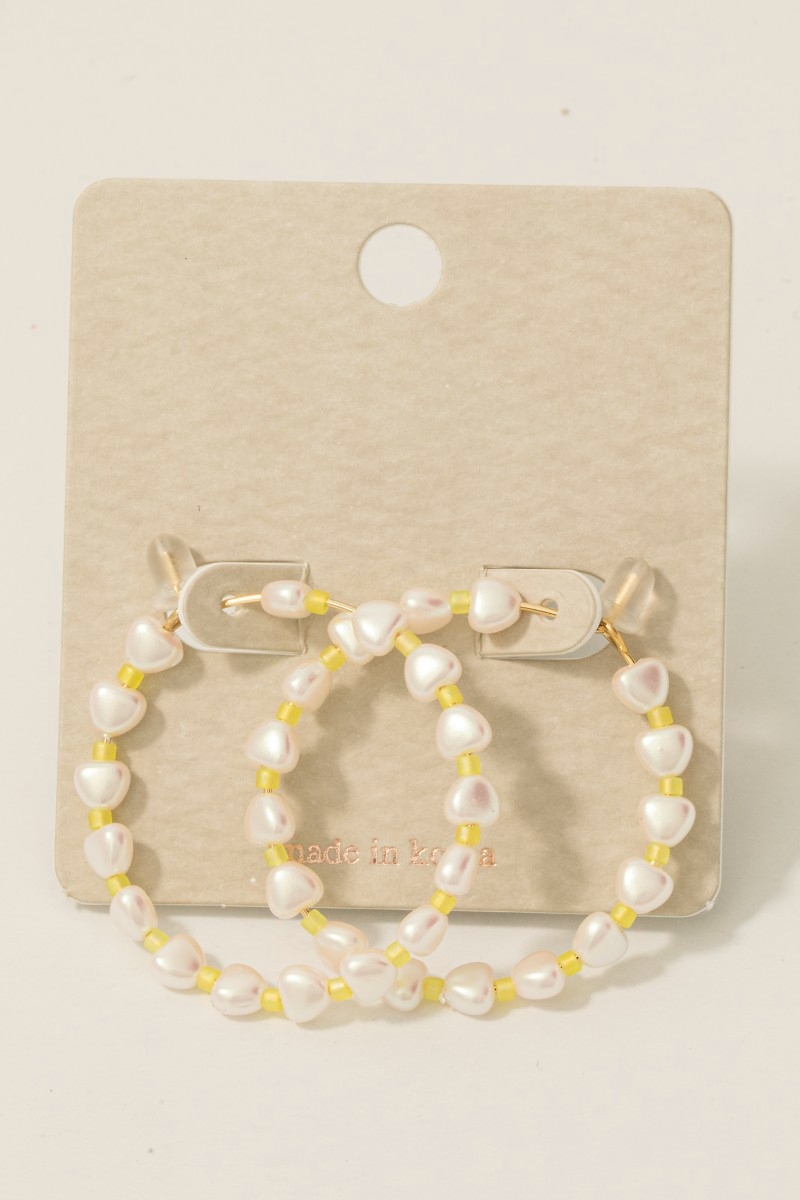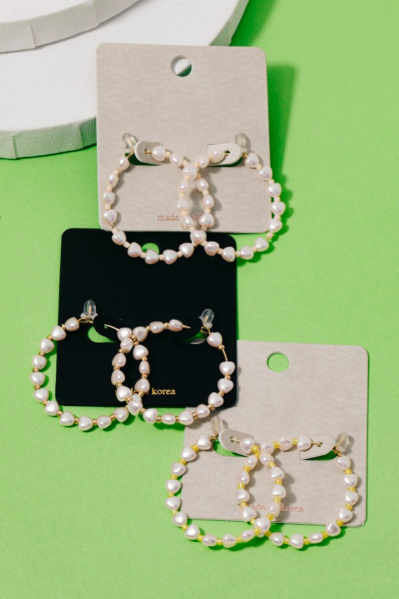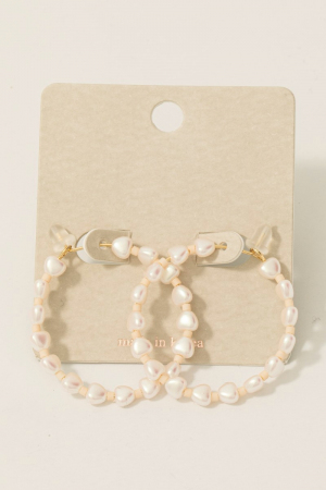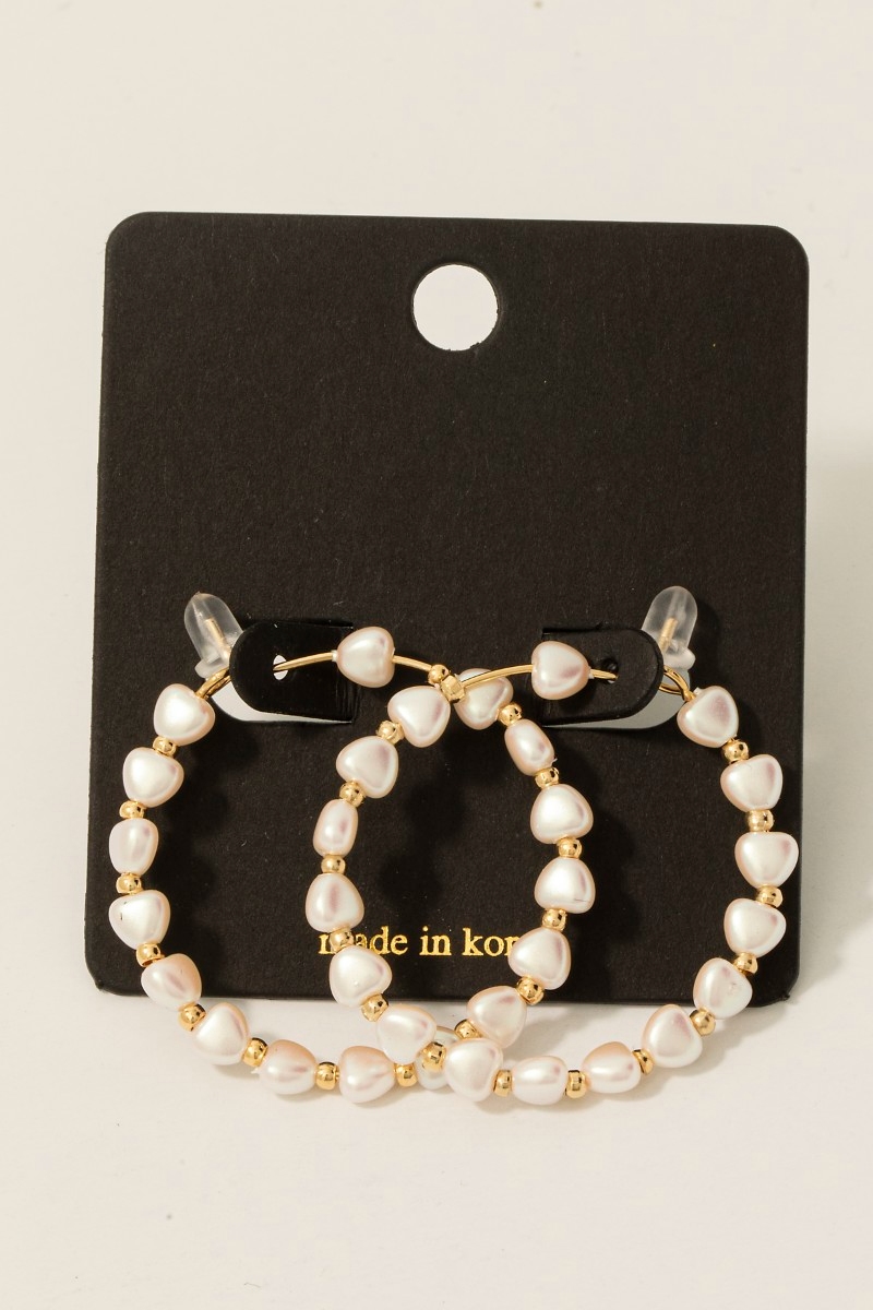 • This pair of hoop earrings features a fashionable pearl and beads style. Step into a world of refined taste as this pair of hoop earrings effortlessly refines the details of your outfit.