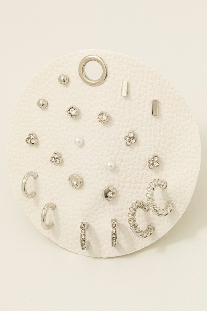 - This pair of hoop earrings brings a luxurious pearl and gem studs assorted stud and set style. Celebrate individual style with this versatile, eye-catching addition.
