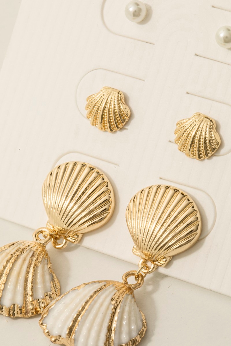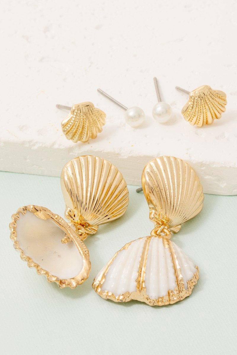 - This pair of stud earrings showcases a timeless pearl and mixed clam shell charms sea life style. Celebrate the art of accessorizing with this piece that effortlessly encapsulates modern trends.