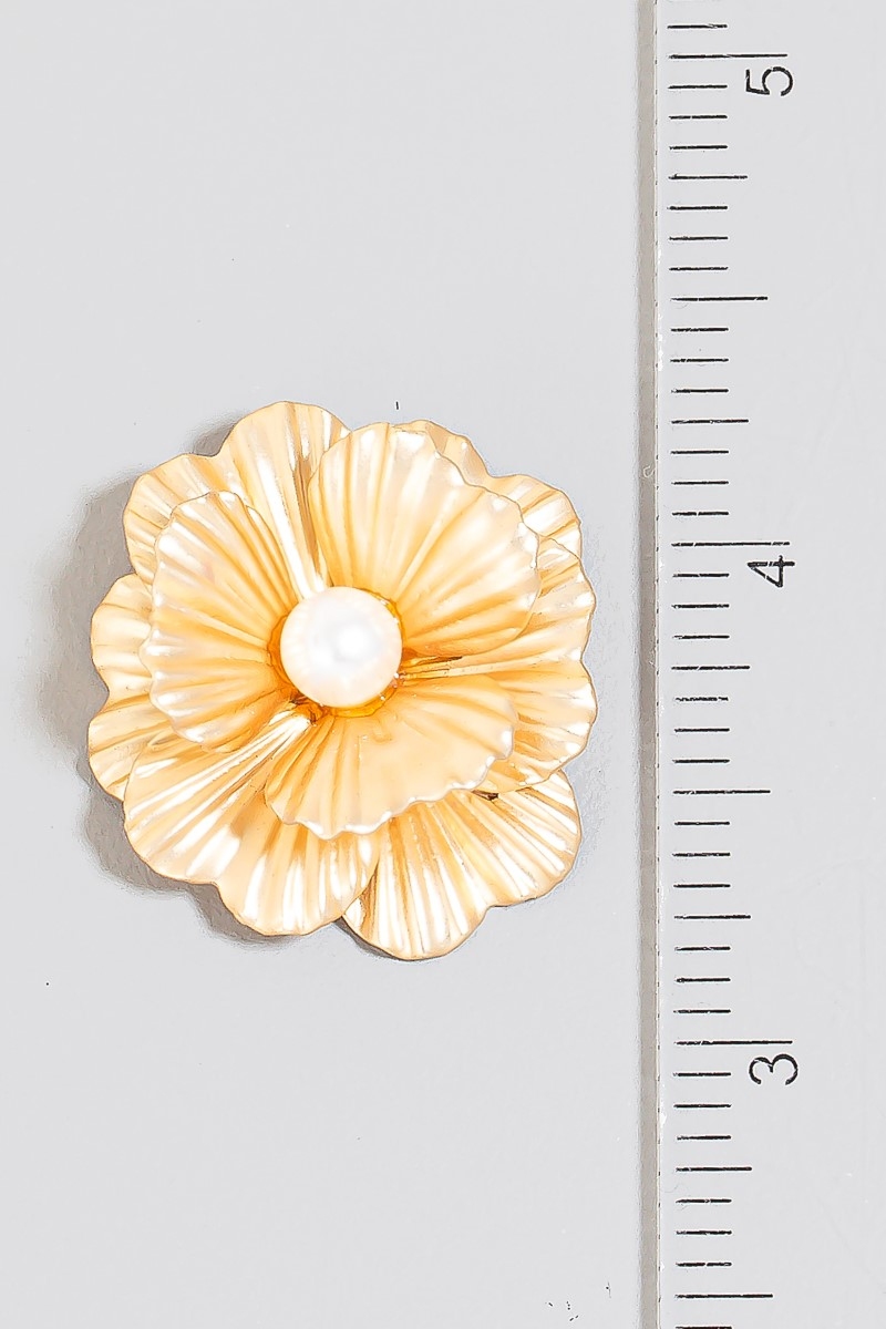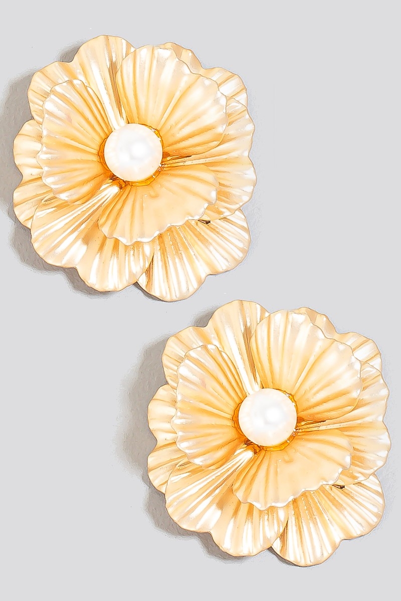 • This pair of stud earrings adds a modern pearl stud matte metallic flower style. Elevate your ensemble with this chic, timeless pair of stud earrings.
