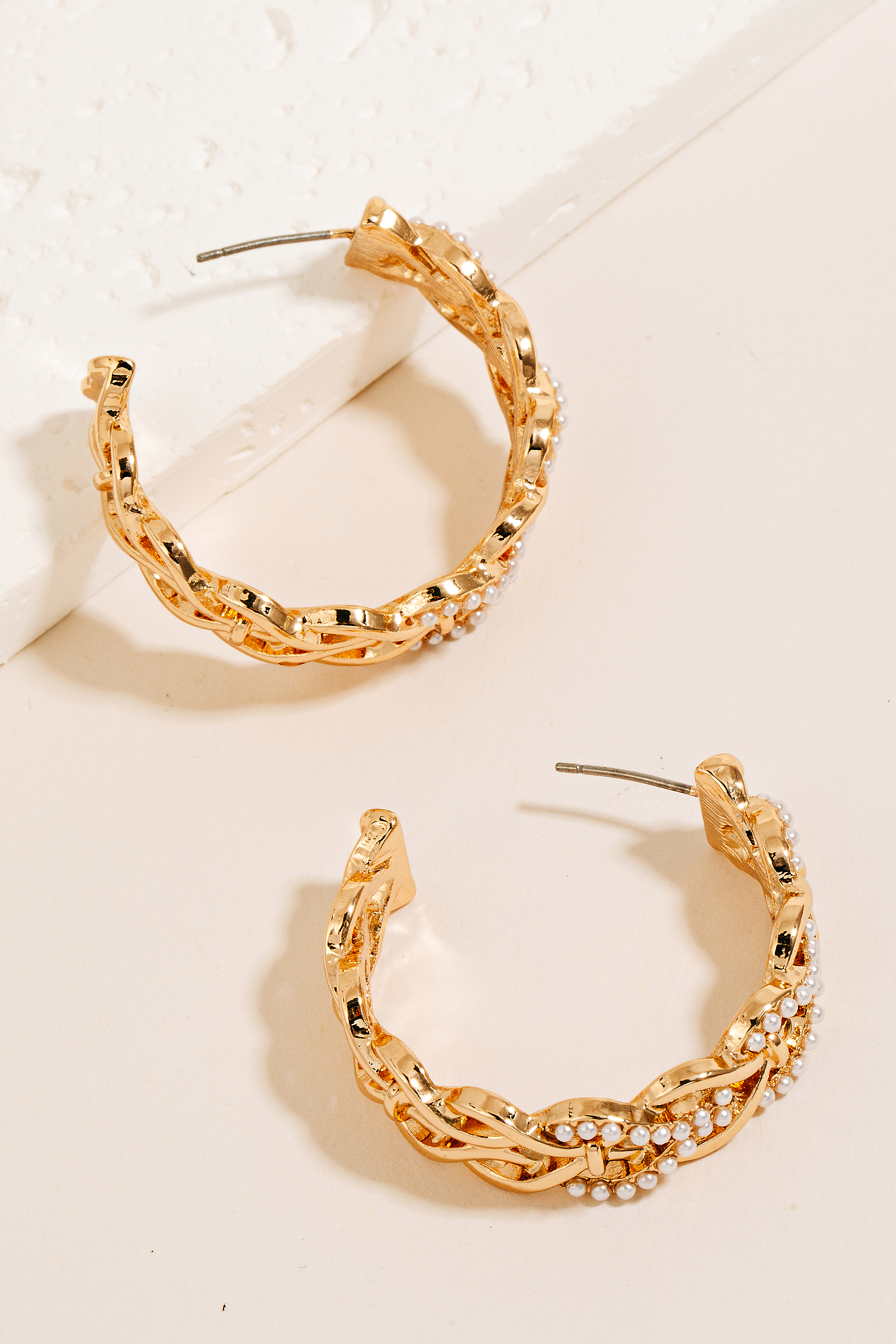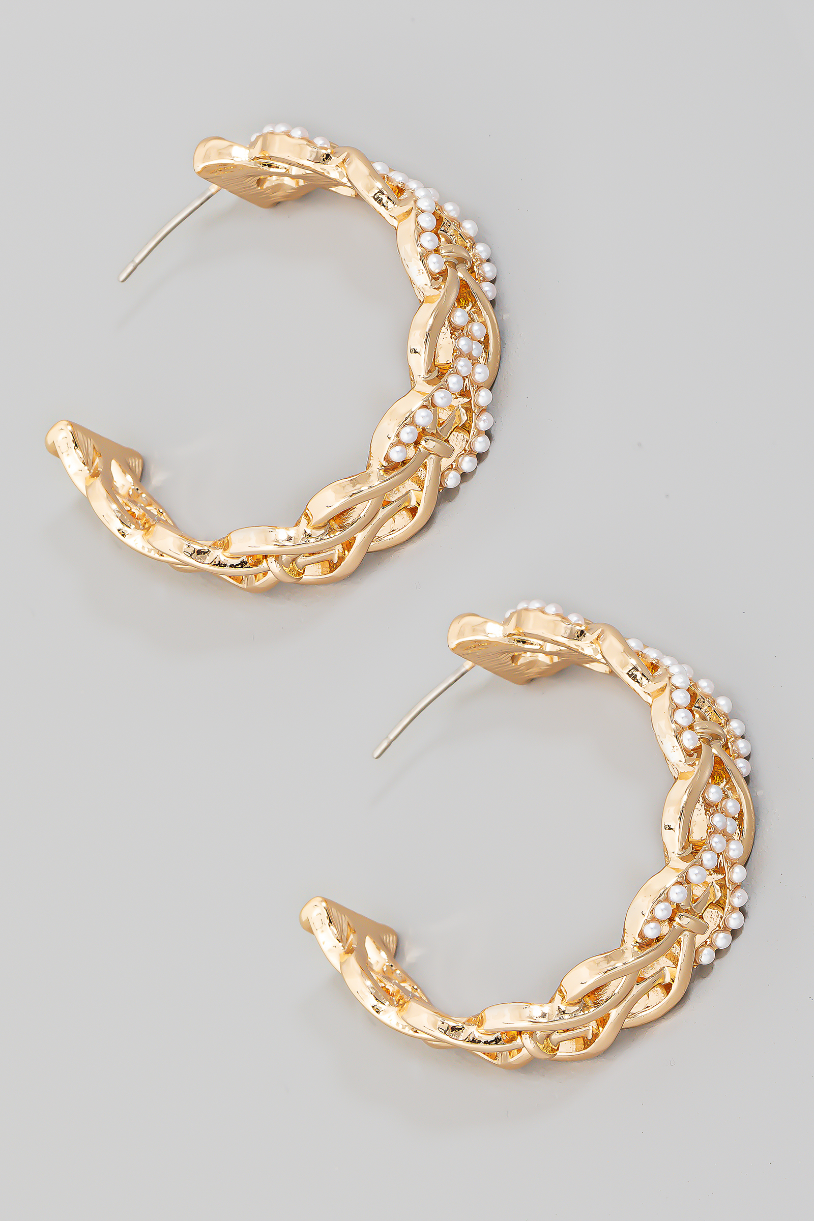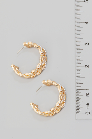 - This pair of hoop earrings brings a unique pearl studded woven metallic style. Explore a blend of classic charm and contemporary flair.