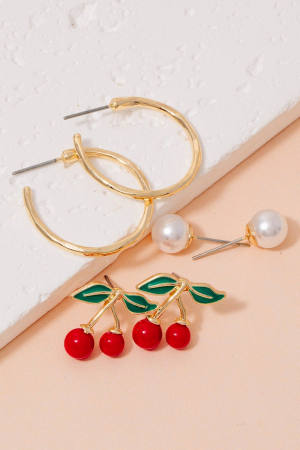 - This pair of earrings displays a fashionable tube hoops pearl and cherry studs set style. Embark on a journey of sartorial refinement as this pair of earrings effortlessly complements your fashion sense.