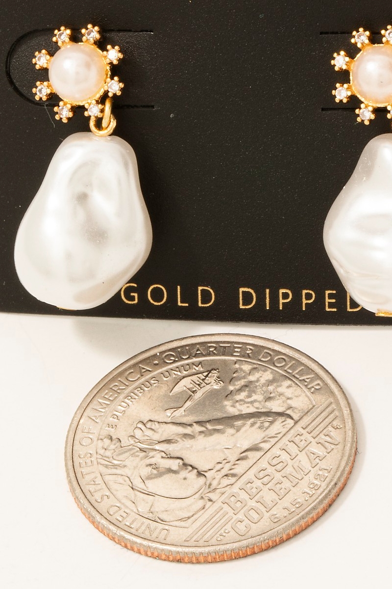 • this pair of columbus jewelry dangle earrings features a fashionable gold dipped pearl and cubic zirconia studs style. Witness the perfect fusion of style and functionality as this pair of columbus jewelry dangle earrings effortlessly complements your lifestyle.