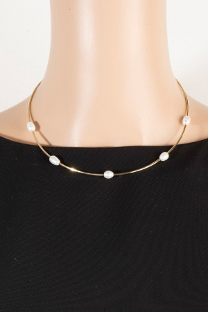 • This necklace showcases a timeless gold dipped pearl station choker style. Indulge in the artistry of accessorizing with this unique piece.